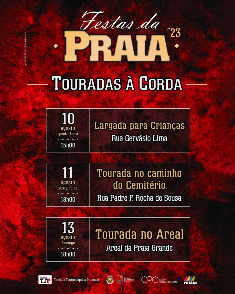 Nas touradas de rua organizadas pela TTP, está agendada, no dia 10, às 15h00, uma largada para crianças na Rua Gervásio Lima; no dia 11, às 18h00, decorrerá a tourada no Caminho do Cemitério e a 13, domingo, a partir das 18h00, a tradicional tourada no areal da Praia (Praia Grande).