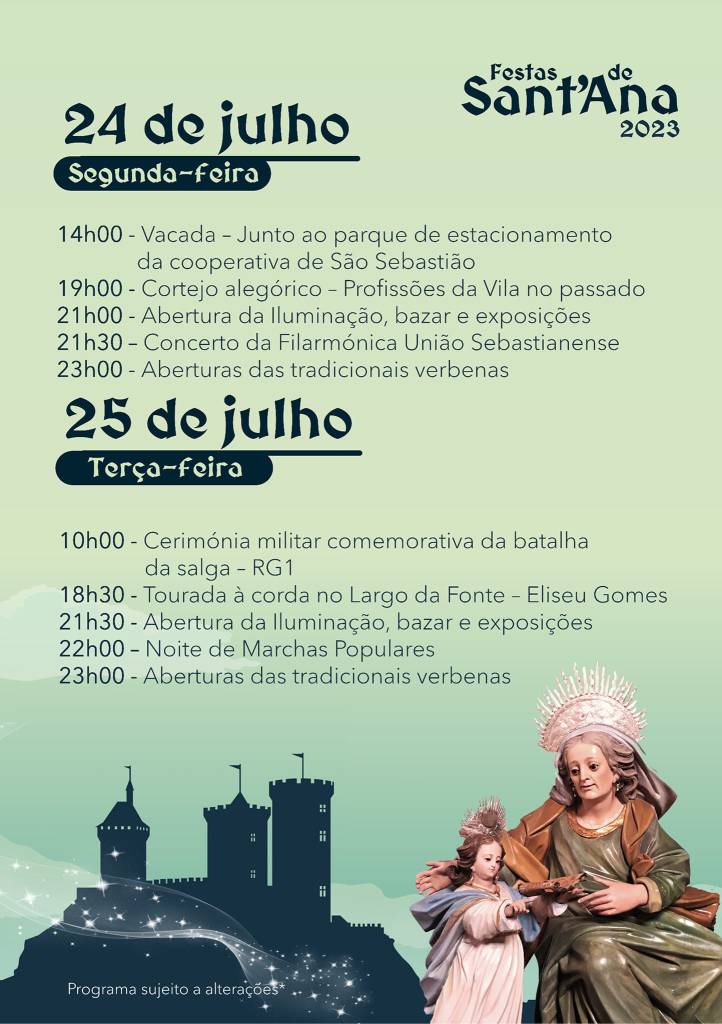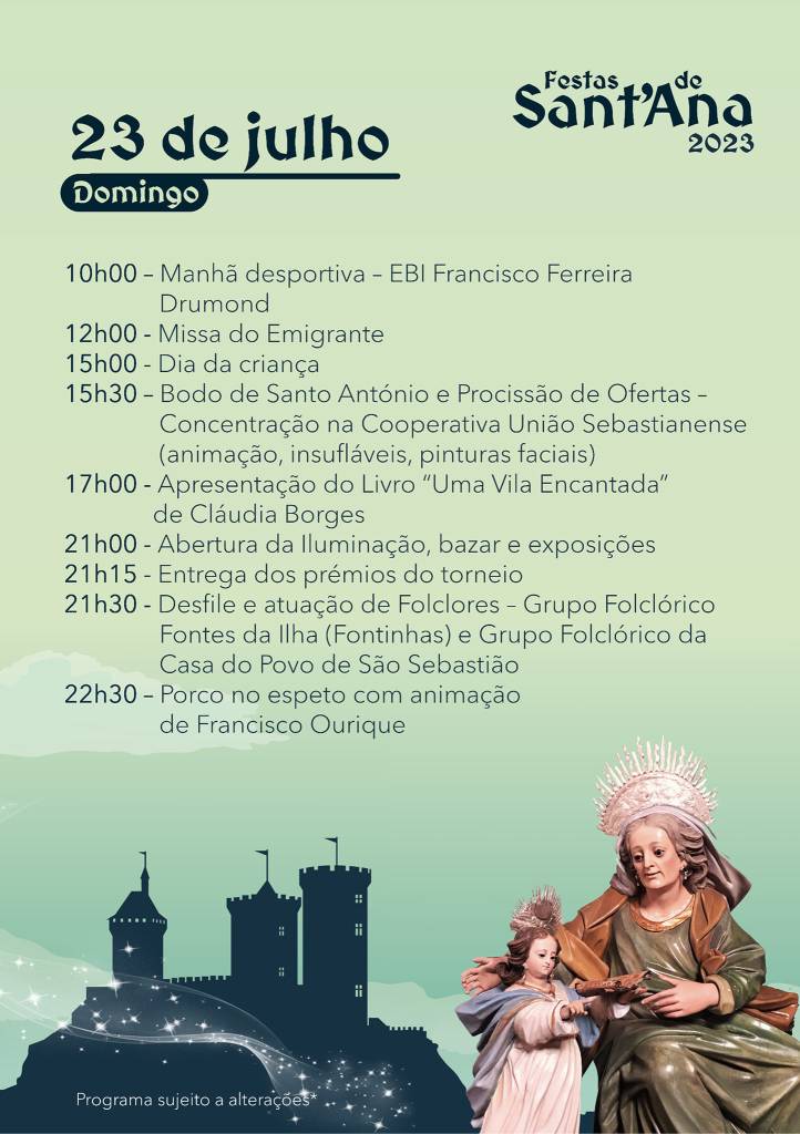 O programa acima apresentado, sujeito a alterações, resulta do trabalho realizado ao longo do ano pela Comissão das Festas de Sant’Ana 2023: