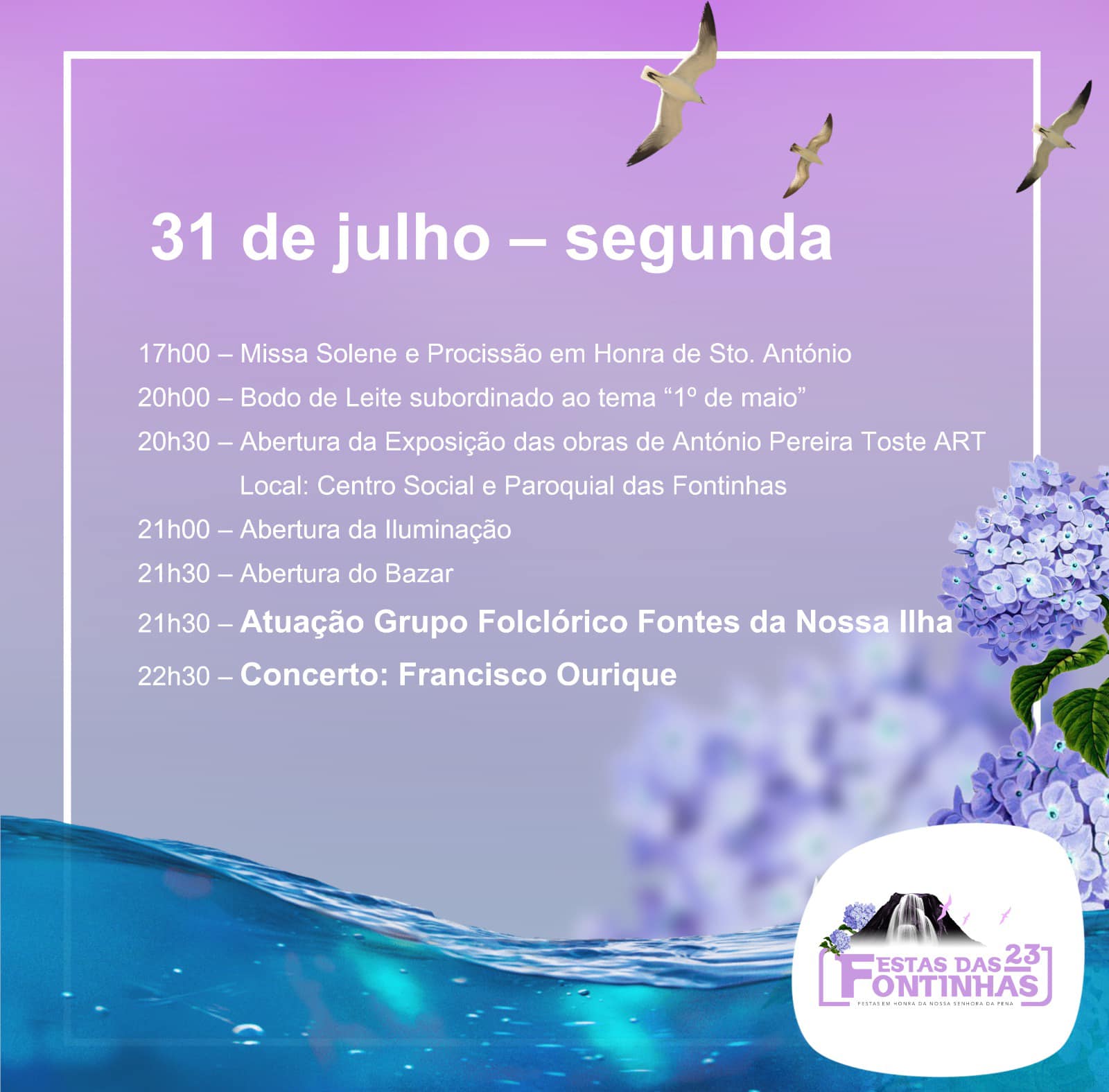 Destaque ainda para o bodo de leite, subordinado ao tema “1.º de maio”, que terá lugar na próxima terça-feira, dia 31 de julho.