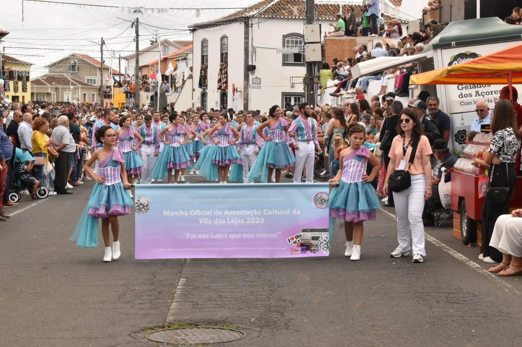 Com um “mar” de gente a assistir — o que não será indiferente a tolerância de ponto concedida pelo Governo Regional dos Açores — o cortejo iniciou-se com o desfile das filarmónicas Sociedade Progresso Lajense e Sociedade Recreio Lajense, seguido do desfile da Marcha Oficial das festas, “Foi nas Lajes que nos vimos!”, e por fim, a parada da vila das Lajes 2023.