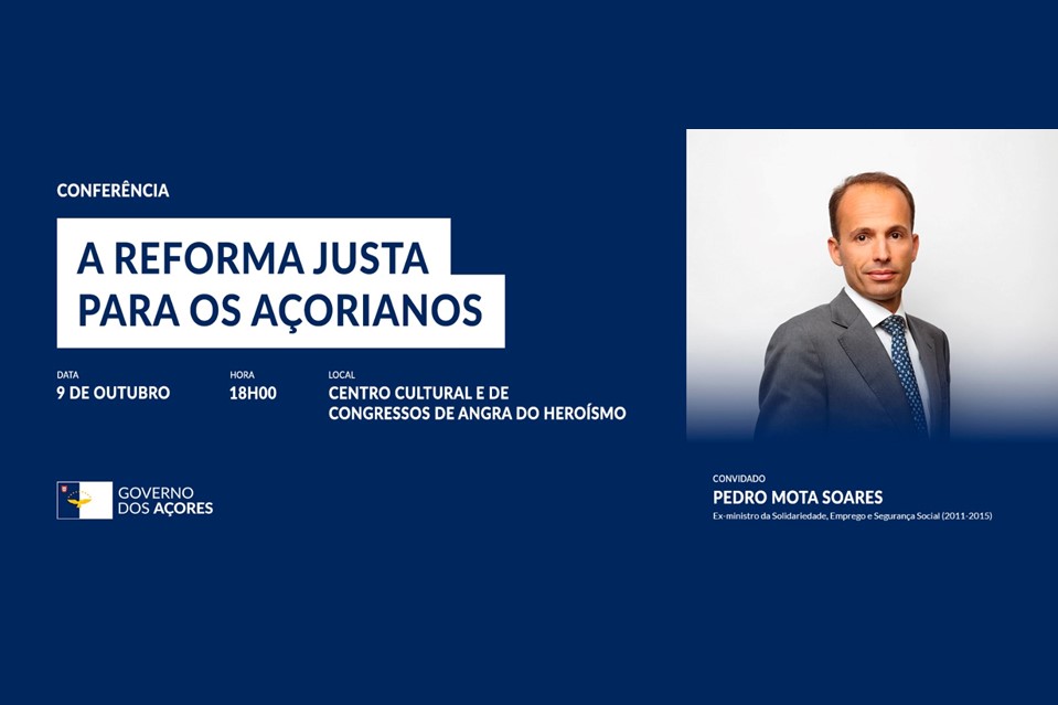 O Governo Regional dos Açores, através da Vice-Presidência do Governo, promove na próxima segunda-feira, dia 9 de outubro, às 18h00, no Centro Cultural e de Congressos, em Angra do Heroísmo, uma conferência intitulada “A reforma justa para os açorianos”.