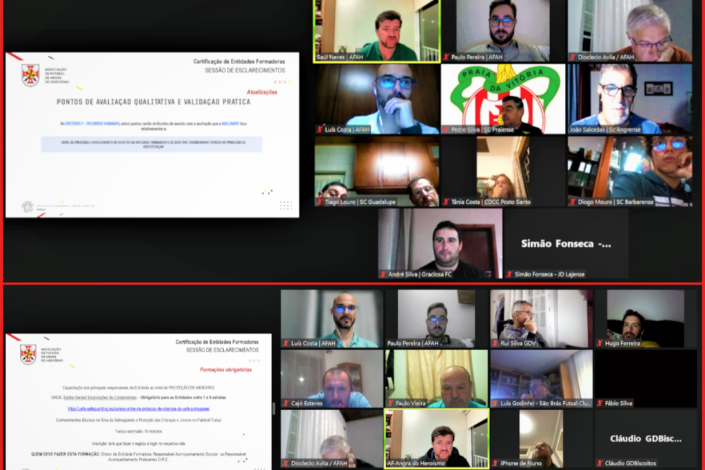 A Subcomissão de Certificação da Associação de Futebol de Angra do Heroísmo (AFAH) promoveu duas reuniões, por videoconferência, a 23 e 25 de outubro, com os seus filiados.