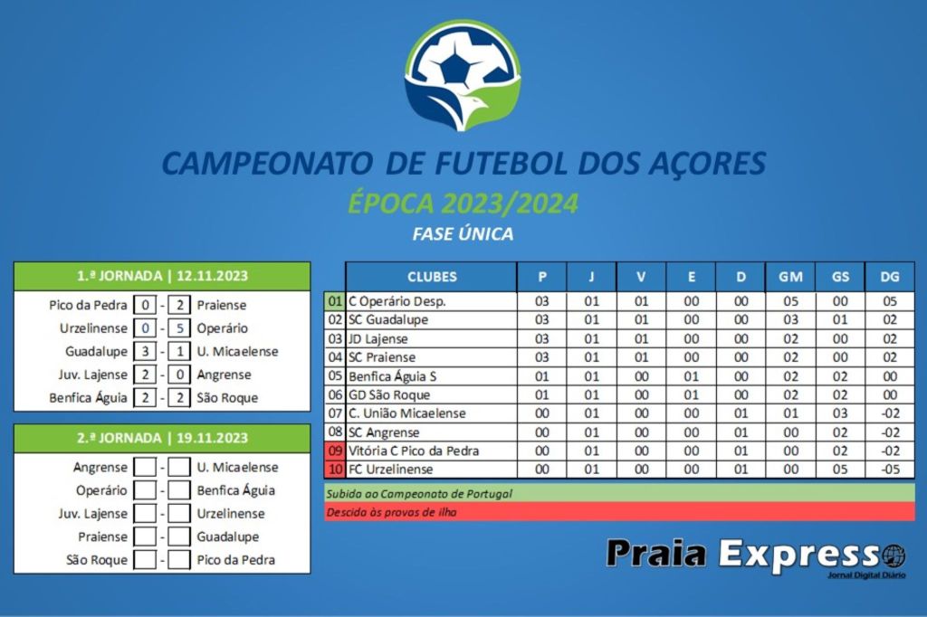 O pontapé de saída da edição 2023/2024 do Campeonato de Futebol dos Açores deu-se na noite deste sábado, com o estreante Vitória Clube do Pico da Pedra a receber um dos fortes candidatos à vitória na competição — o Sport Club Praiense. Esgotados os 90 minutos no Campo José Silva Calisto a vitória sorriu aos homens da Praia da Vitória por 0 — 2.