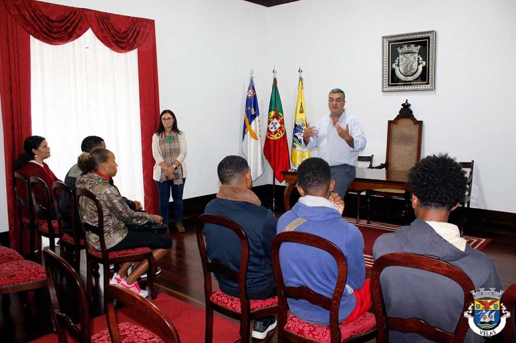 O presidente do Município de Velas, Luís Silveira, acompanhado pela vereadora Cristina Nascimento, recebeu, no Edifício dos Paços do Concelho, cinco alunos de Cabo Verde que se encontram a frequentar a Escola Profissional da Ilha de São Jorge, tendo estes sido acompanhados por Rita Madruga, Adjunta Pedagógica desta escola.