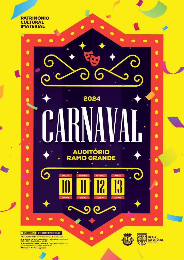 A venda de bilhetes para o carnaval 2024 no Auditório do Ramo Grande (ARG) inicia-se no próximo sábado, dia 13, pelas 22h00, na internet (ticketline), confirmou, esta segunda-feira, dia 08, a vereadora da Câmara Municipal da Praia da Vitória, Paula Sousa.
