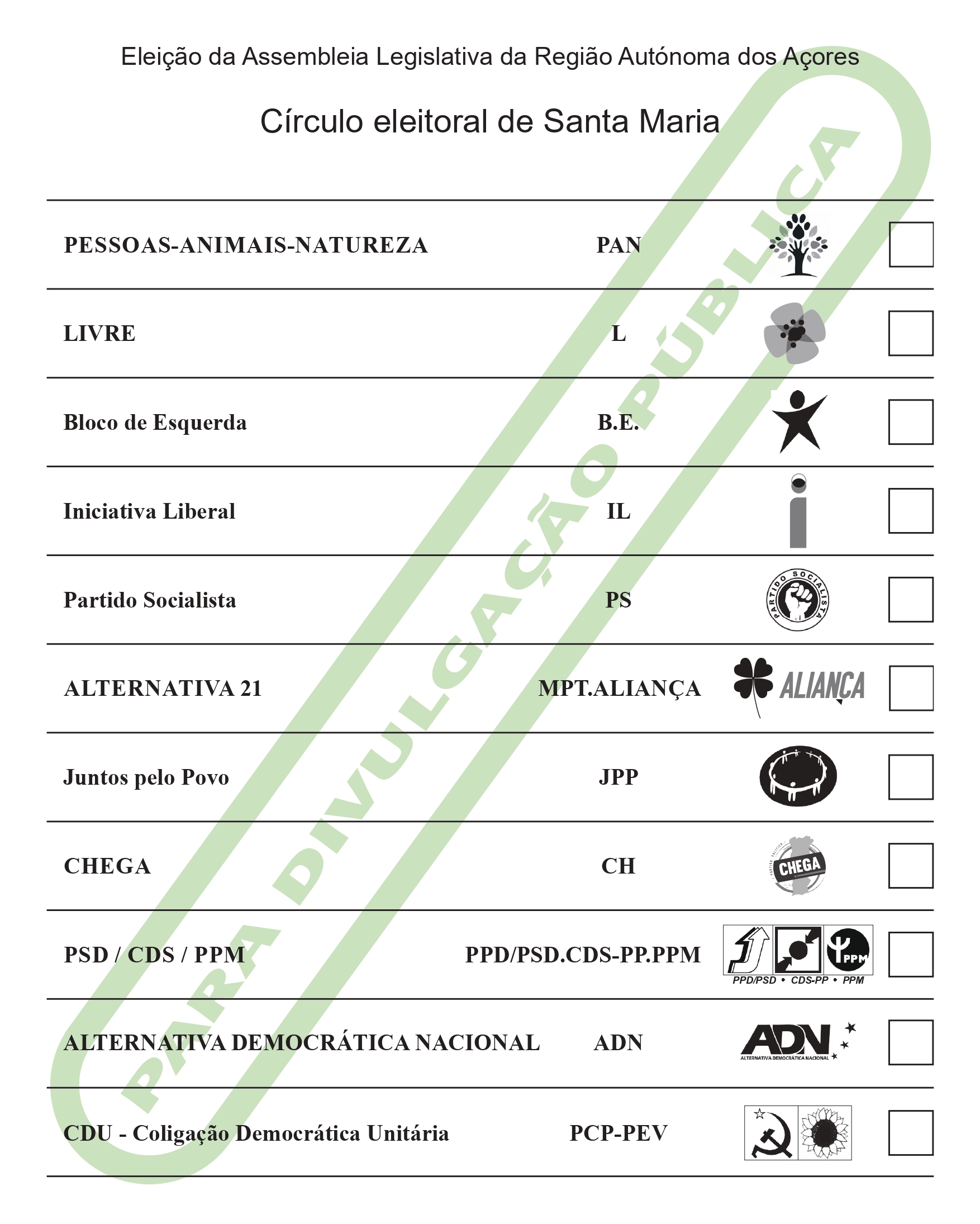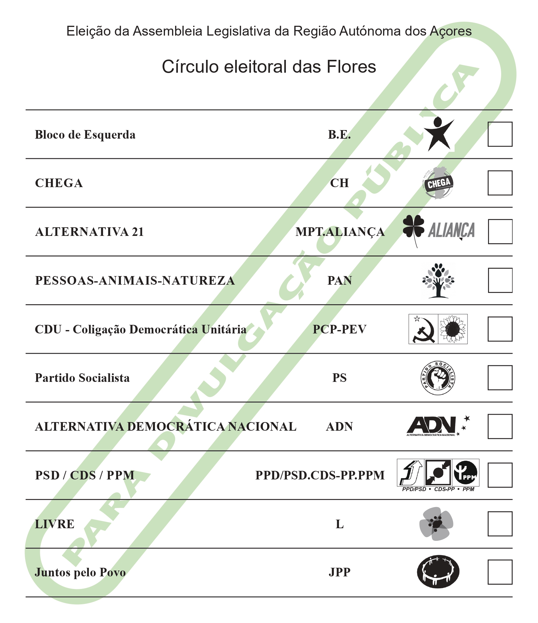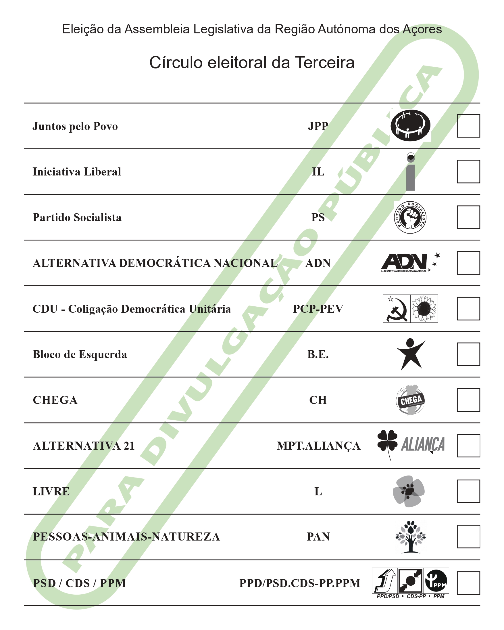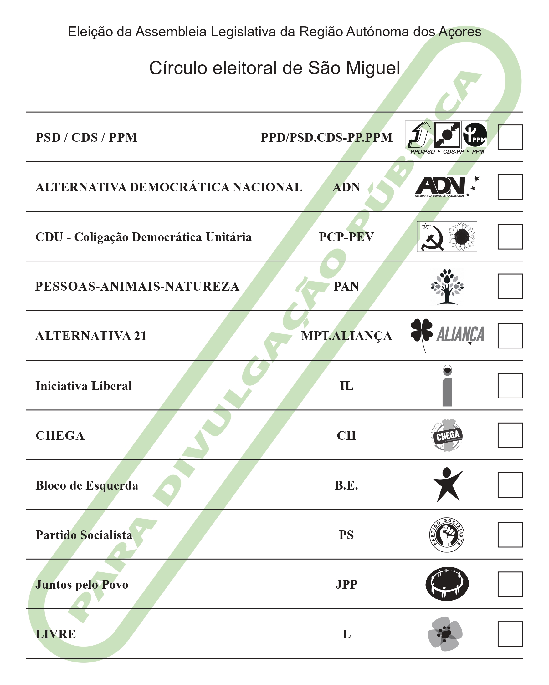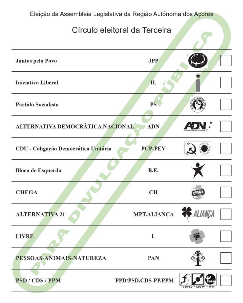 De acordo com a ordenação aí divulgada, apresentamos abaixo a ordenação dos boletins de voto por cada um dos círculos eleitorais de ilha: