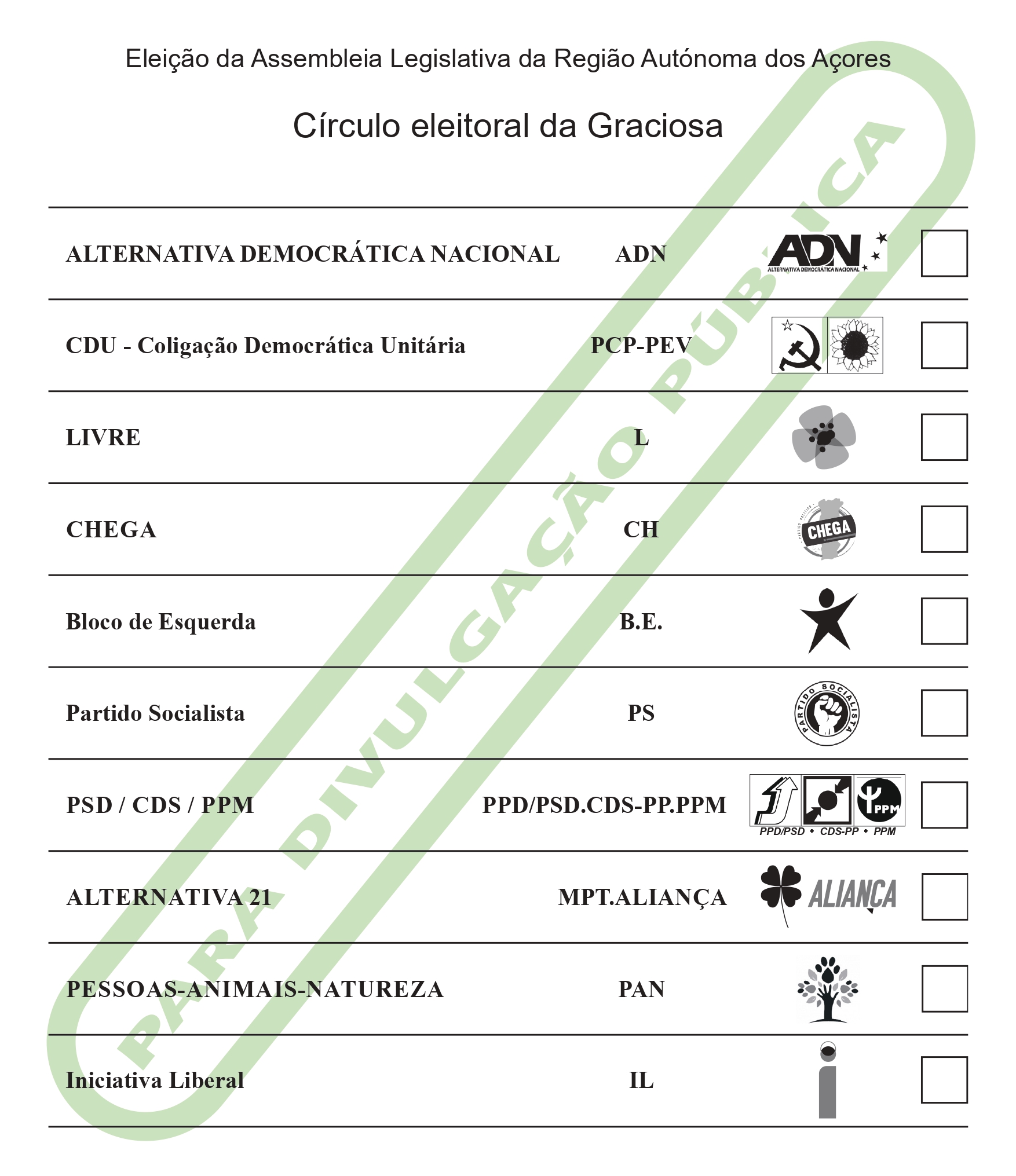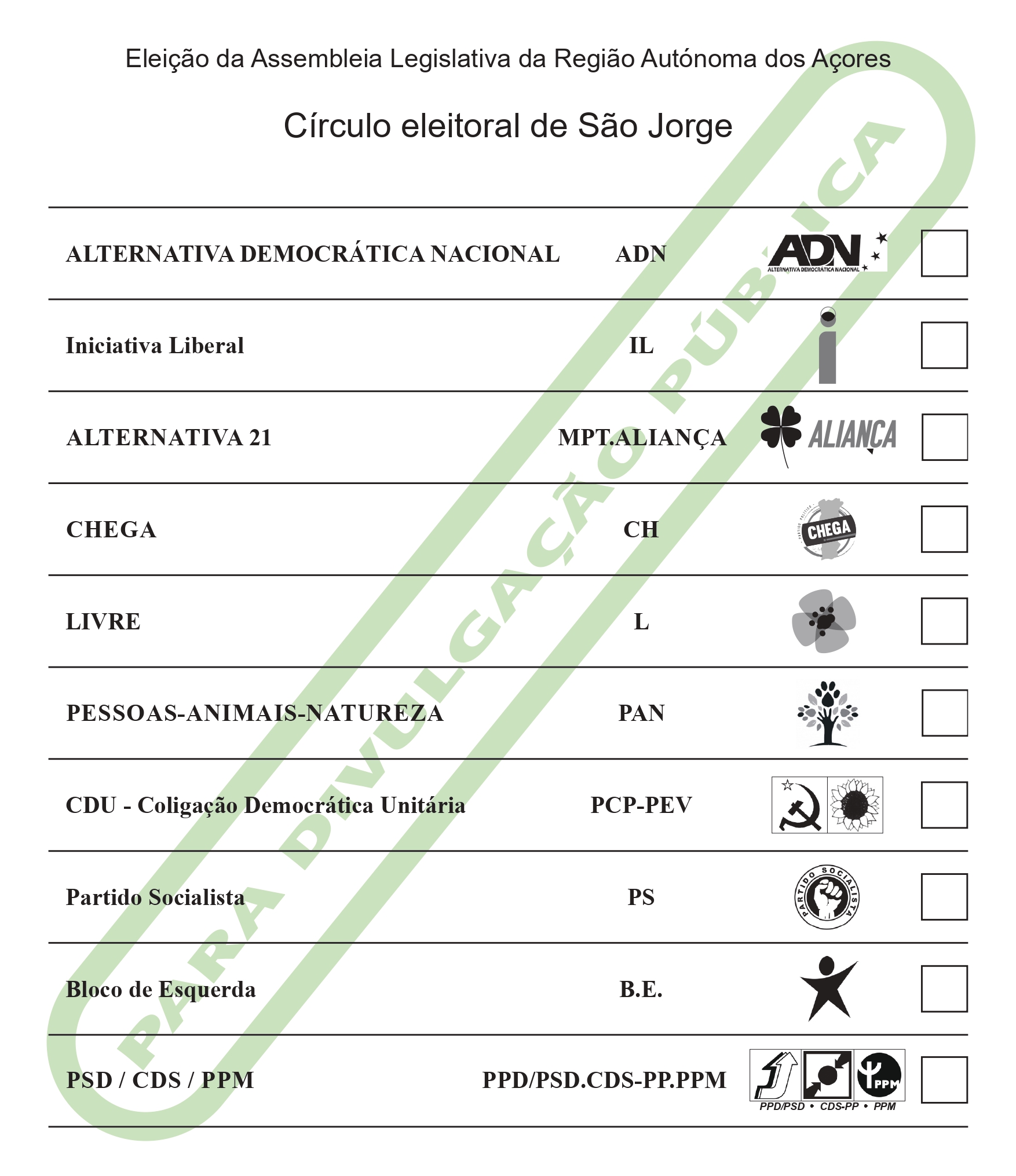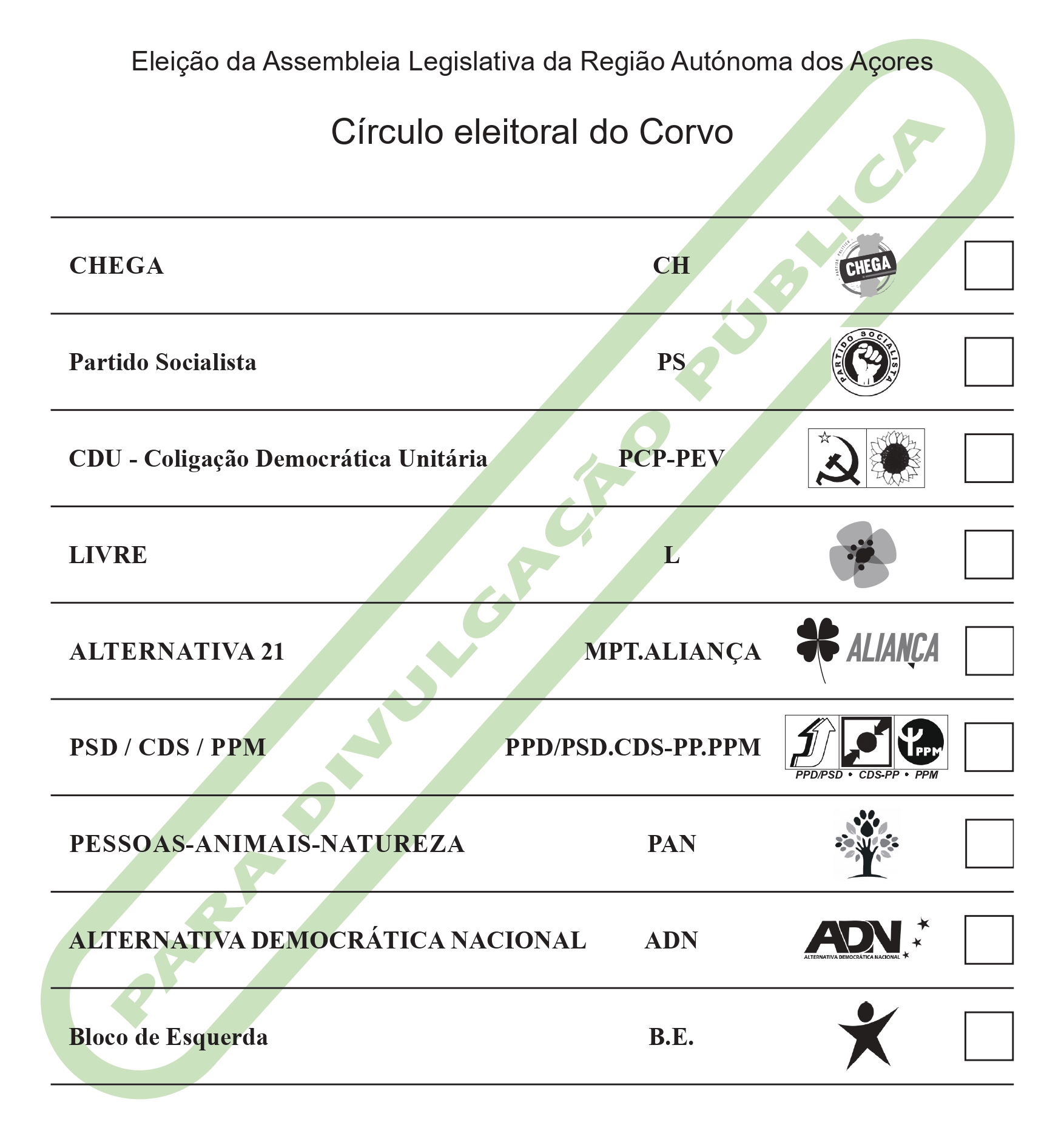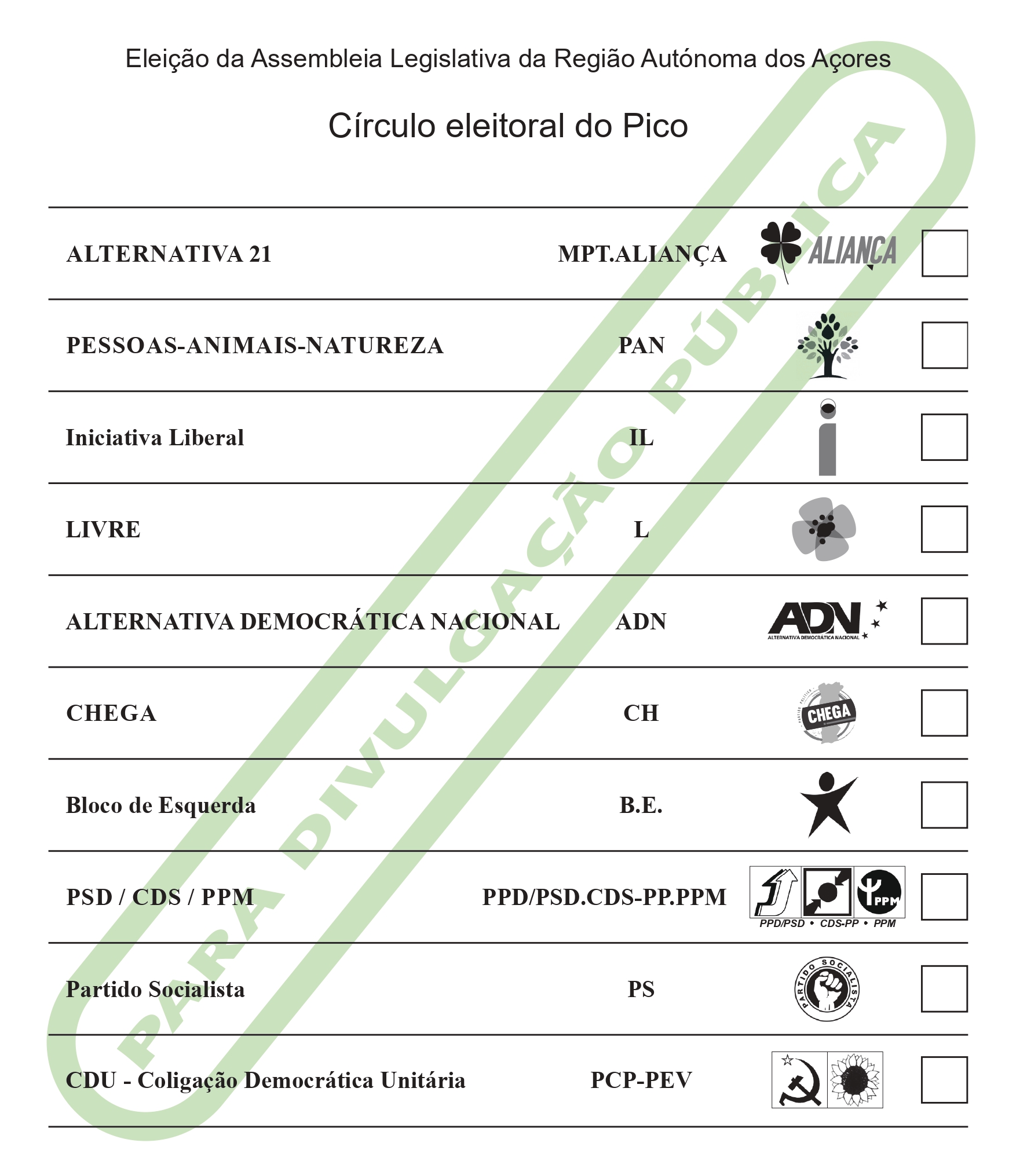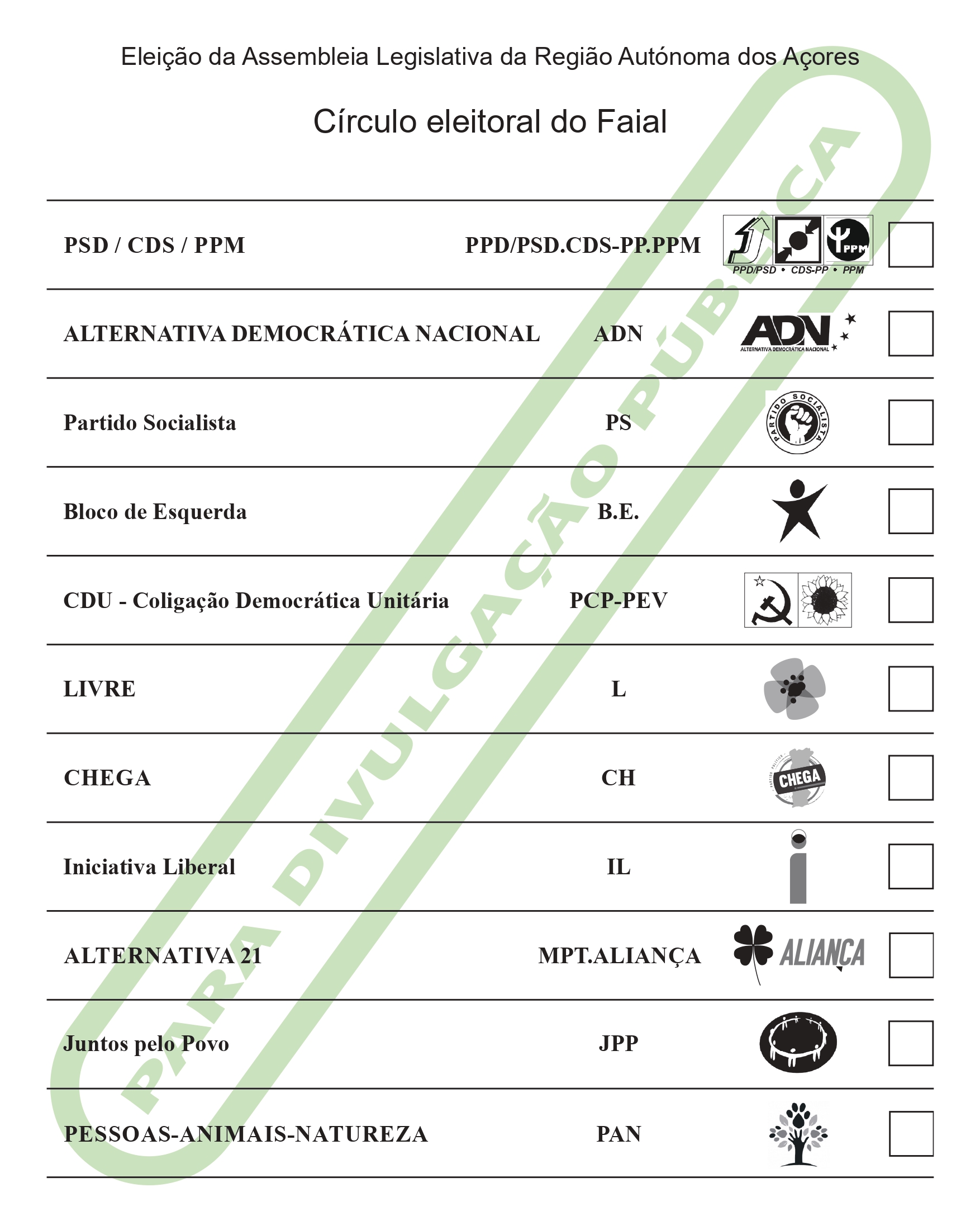 De acordo com a ordenação aí divulgada, apresentamos abaixo a ordenação dos boletins de voto por cada um dos círculos eleitorais de ilha: