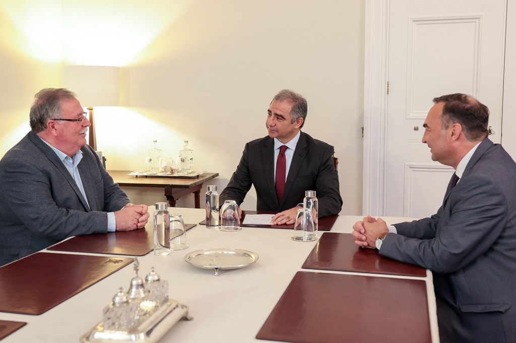 O Presidente do Governo Regional dos Açores, José Manuel Bolieiro, acompanhado do Secretário Regional com a tutela da Agricultura, António Ventura, reuniu-se ontem com o Presidente da Federação Agrícola dos Açores, Jorge Rita, encontro já marcado antes das eleições que serviu para analisar as medidas em vigor de apoio à lavoura.