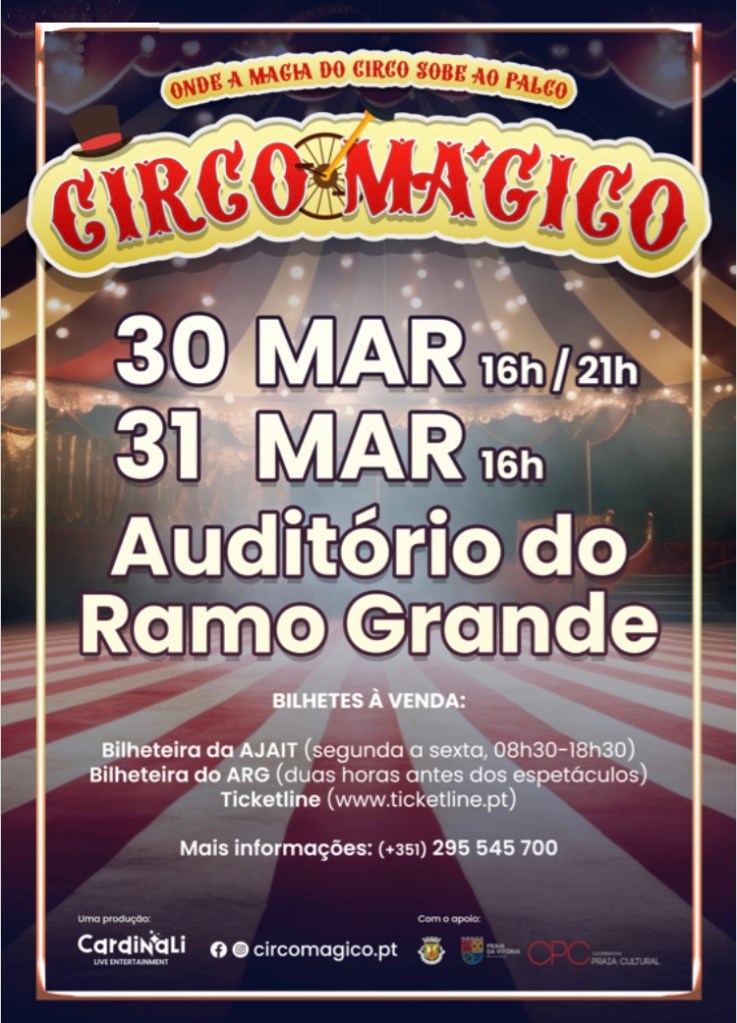 O Cardinali Live Entertainment, traz pela 1ª vez ao Auditório do Ramo Grande o Circo Mágico, nos dias 30 e 31 de março.