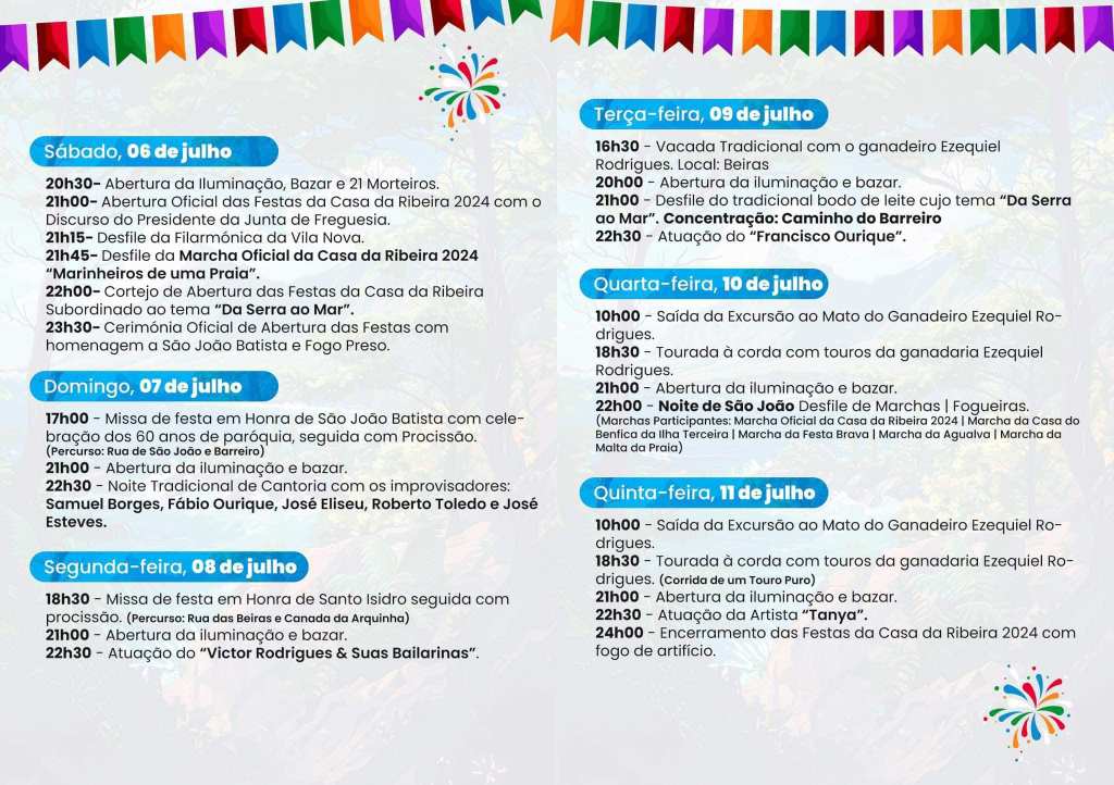 Mais informações sobre as festas da Casa da Ribeira 2024 poderão ser encontradas na página oficial de Facebook do evento: Aqui.