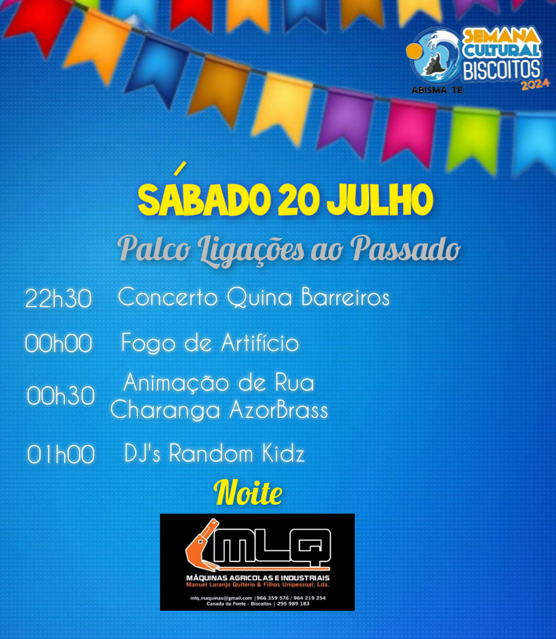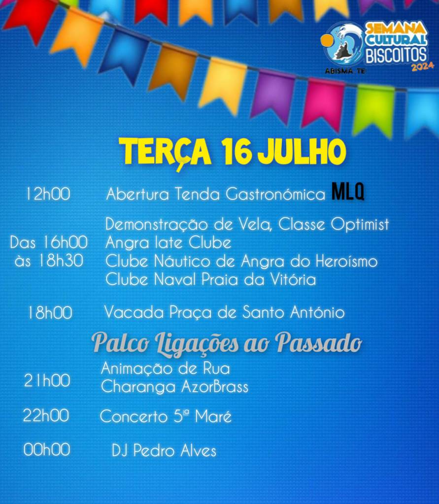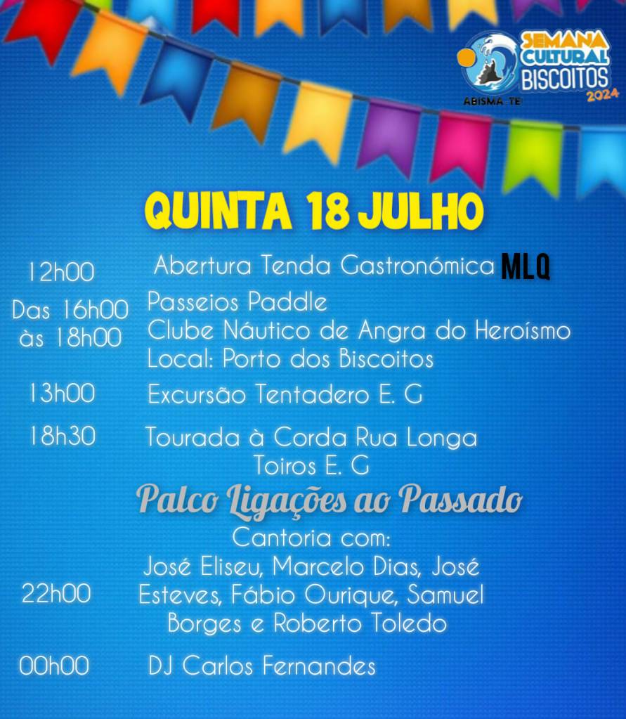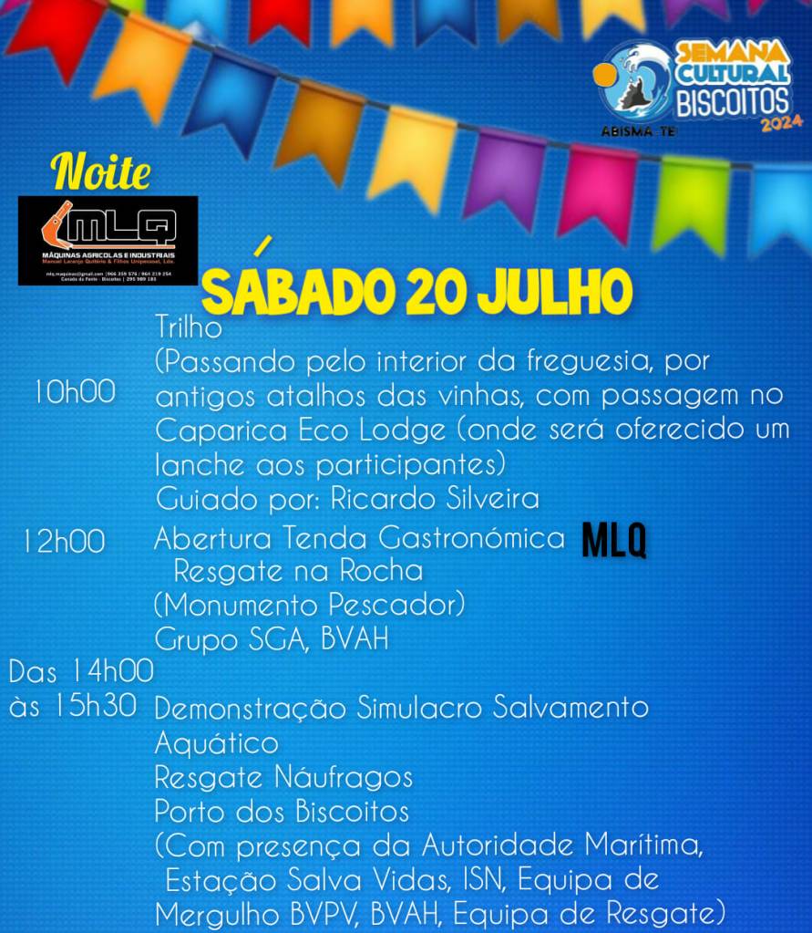 11.07.202411.07.2024 Redação SEMANA CULTURAL DOS BISCOITOS 2024 — PROGRAMA A edição de 2024 da Semana Cultural dos Biscoitos decorre de 12 a 20 de julho. PROGRAMA | 12 | 13 | 14 | 15 | 16 | 17 | 18 | 19 | 20 © PE | Imagens: Facebook Semana Cultural dos Biscoitos Partilhar isto: Carregue aqui para imprimir (Abre numa nova janela) Imprimir Clique para partilhar no Facebook (Abre numa nova janela) Facebook Click to share on X (Abre numa nova janela) X Clique para partilhar no LinkedIn (Abre numa nova janela) LinkedIn Clique para partilhar no WhatsApp (Abre numa nova janela) WhatsApp Relacionado