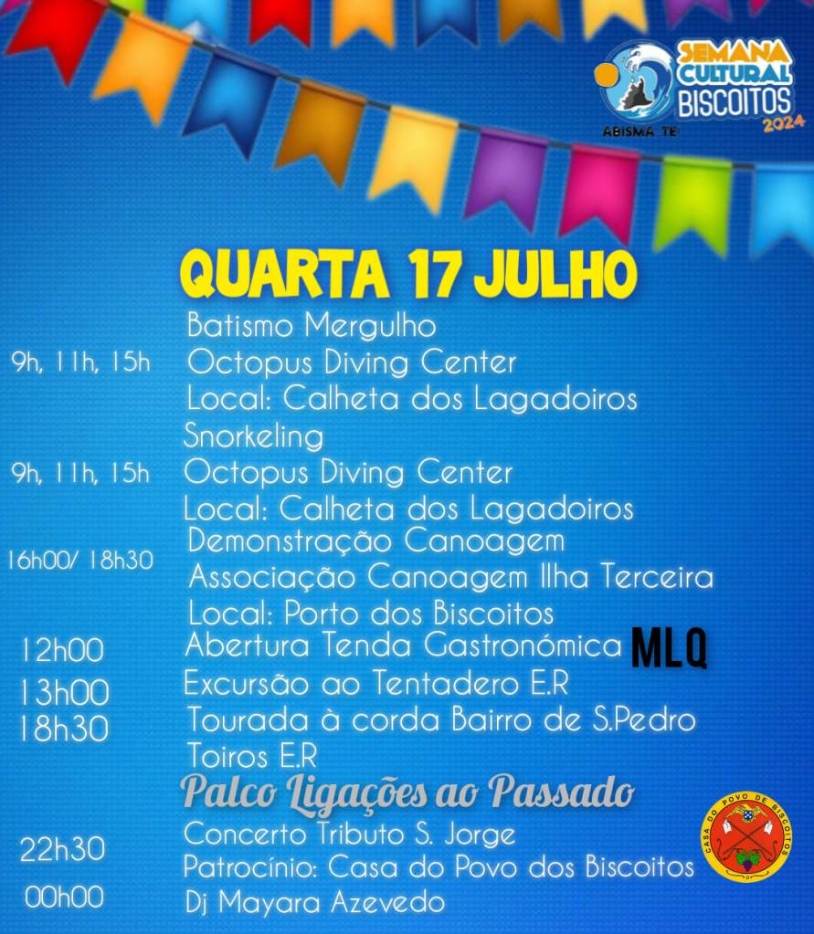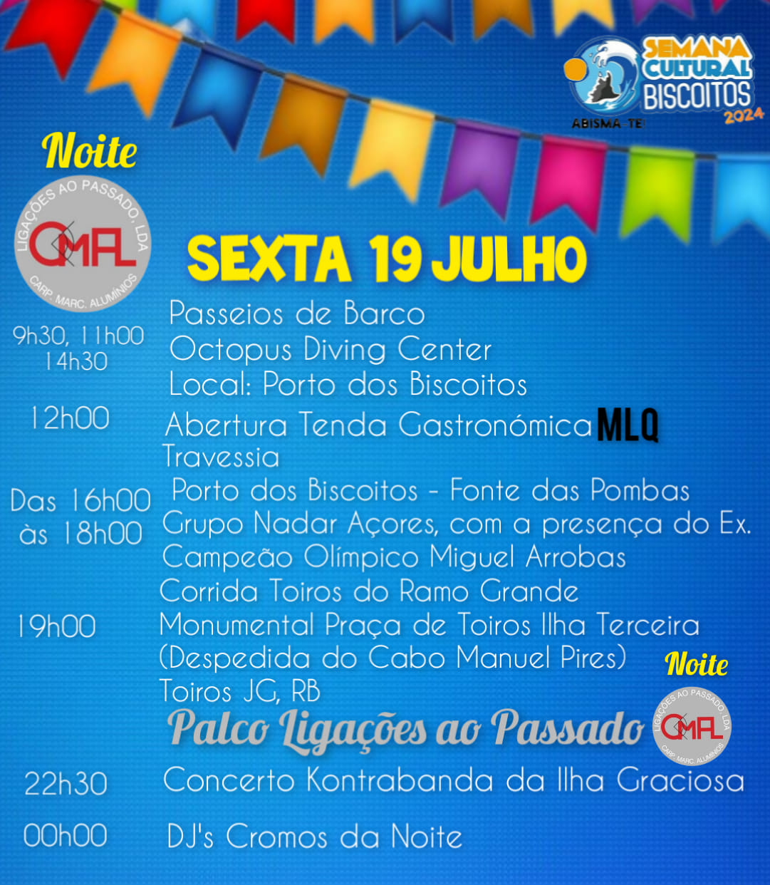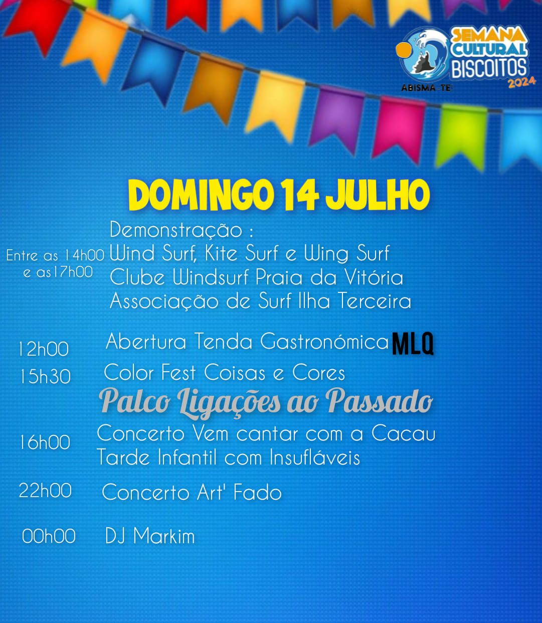 11.07.202411.07.2024 Redação SEMANA CULTURAL DOS BISCOITOS 2024 — PROGRAMA A edição de 2024 da Semana Cultural dos Biscoitos decorre de 12 a 20 de julho. PROGRAMA | 12 | 13 | 14 | 15 | 16 | 17 | 18 | 19 | 20 © PE | Imagens: Facebook Semana Cultural dos Biscoitos Partilhar isto: Carregue aqui para imprimir (Abre numa nova janela) Imprimir Clique para partilhar no Facebook (Abre numa nova janela) Facebook Click to share on X (Abre numa nova janela) X Clique para partilhar no LinkedIn (Abre numa nova janela) LinkedIn Clique para partilhar no WhatsApp (Abre numa nova janela) WhatsApp Relacionado
