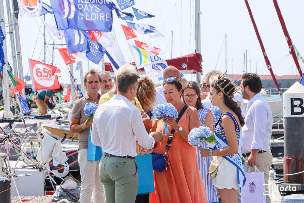 O Presidente da Câmara Municipal da Horta, acompanhado pelo executivo, pelos representantes da Comissão Náutica Municipal e pelos parceiros da organização, deu as boas-vindas, esta sexta-feira, aos iatistas que visitam a cidade da Horta, com a entrega de hortênsias, do programa da festa e de um “gift pack” composto por produtos locais de referência, nomeadamente por uma miniatura de mel multiflora, de queijo, e ainda uma representação de arte floral, produzida pelo nosso artesanato.