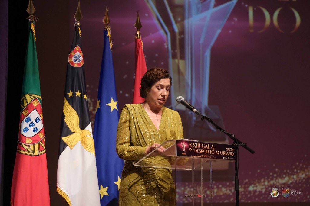Na sua intervenção, que antecedeu a do Presidente do Governo dos Açores, a Presidente da Câmara Municipal da Praia da Vitória destacou o mérito dos atletas açorianos, decorrente do esforço físico, mental, profissional e familiar que é subjacente aos resultados desportivos.