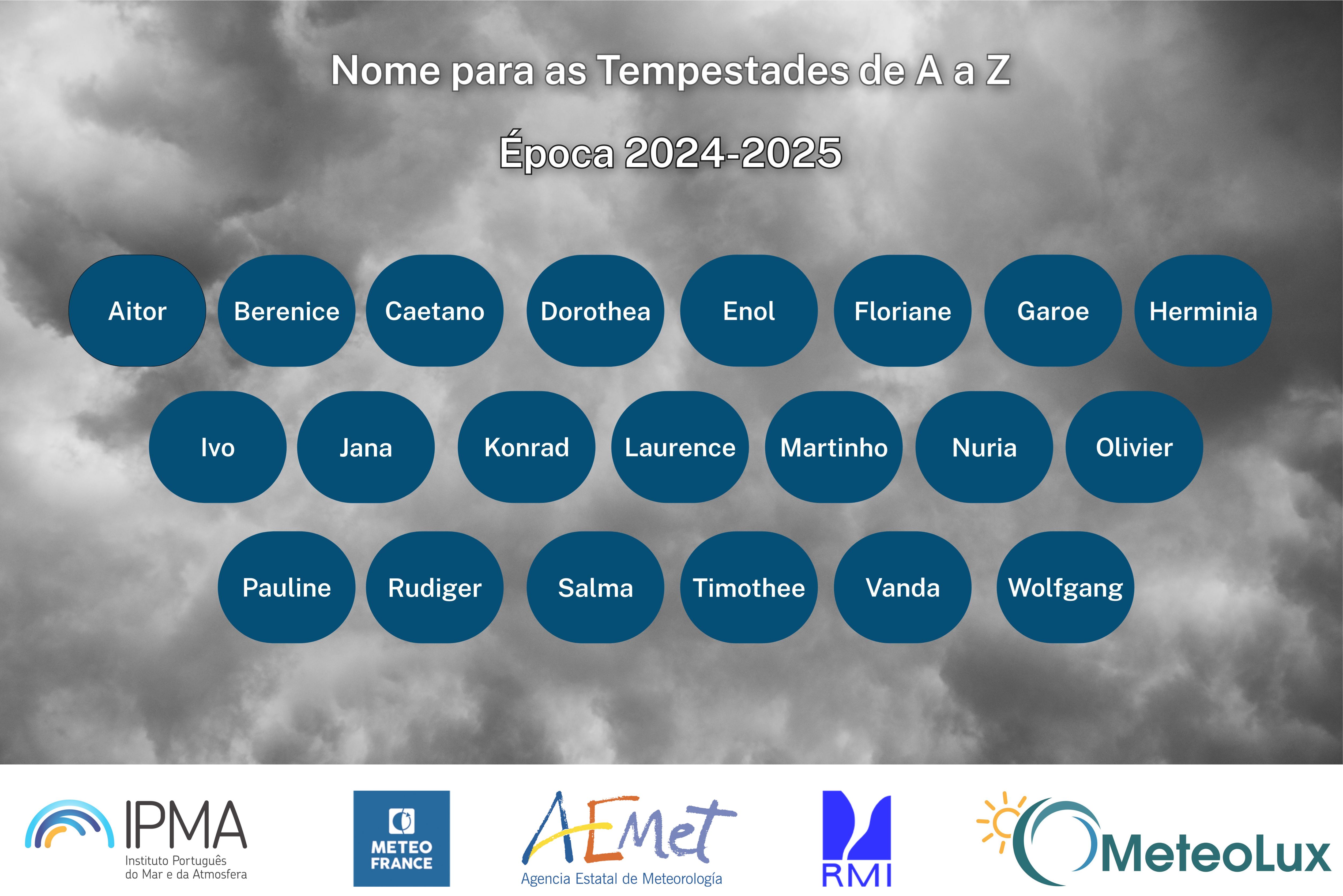 A atribuição de nomes a tempestades é um projeto conjunto dos serviços meteorológicos da Europa, sob os auspícios da rede EUMETNET, que reúne os 33 serviços meteorológicos europeus. O IPMA pertence ao “grupo sudoeste”, no qual se incluem os serviços meteorológicos de Espanha (AEMET), de França (Météo-France), da Bélgica (RMI) e do Luxemburgo (MeteoLux).
