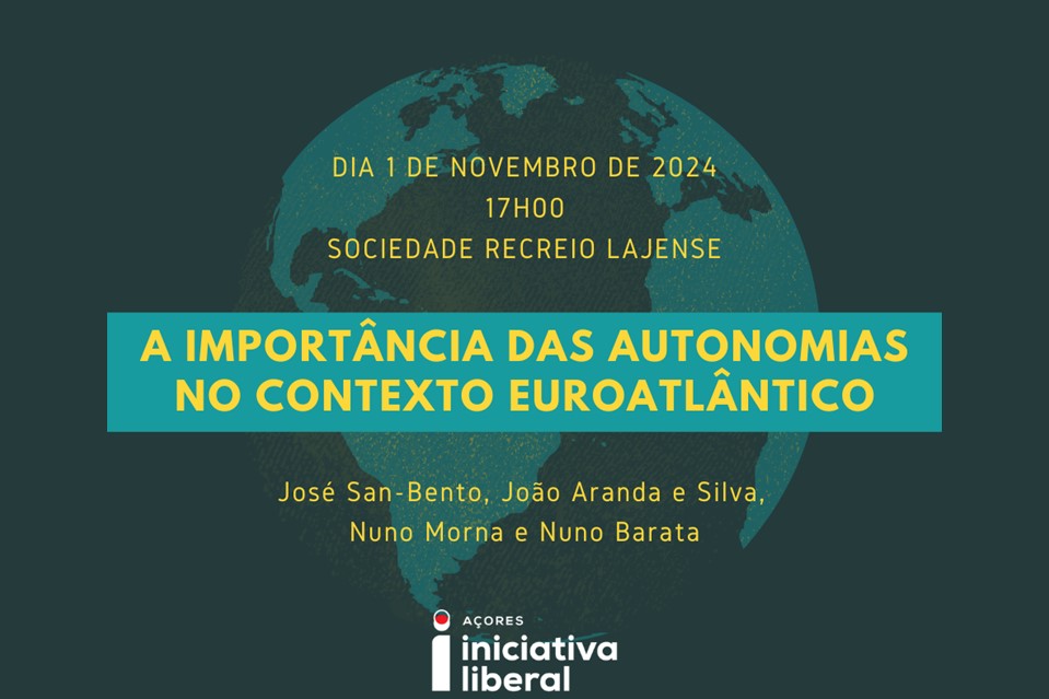 O deputado da Iniciativa Liberal (IL) no Parlamento dos Açores, Nuno Barata, promove, na próxima sexta-feira, dia 01 de novembro, na vila das Lajes, Praia da Vitória, uma conferência subordinada à temática da “Importância das Autonomias no contexto Euro-Atlântico”, onde serão oradores os deputados da IL nos Açores e na Madeira (Nuno Barata e Nuno Morna, respetivamente) e os convidados José Carlos San-Bento e João Aranda e Silva.