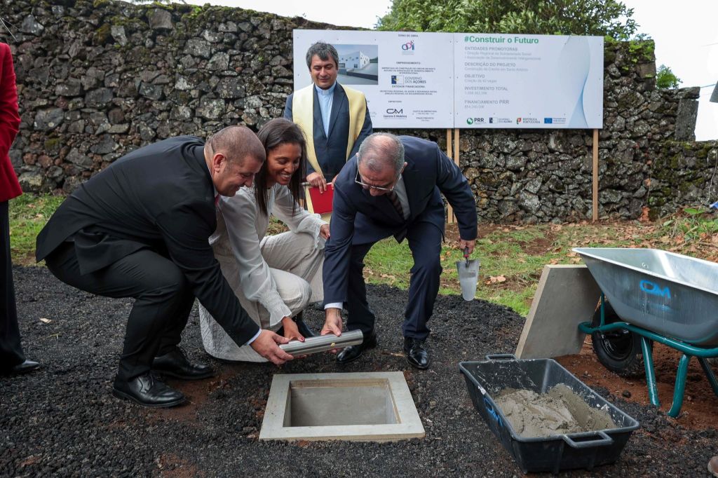 O Presidente do Governo dos Açores, José Manuel Bolieiro, acompanhado da Secretária Regional da Saúde e da Segurança Social, Mónica Seidi, presidiu sexta-feira (08.11.2024) à cerimónia de lançamento da primeira pedra da creche de Santo António, situada no concelho de Ponta Delgada, na ilha de São Miguel.