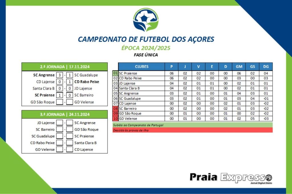 Decorreu neste fim de semana o Campeonato de Futebol dos Açores (CFA), em seniores masculinos, época 2024/2025, com a realização da 2.ª jornada.