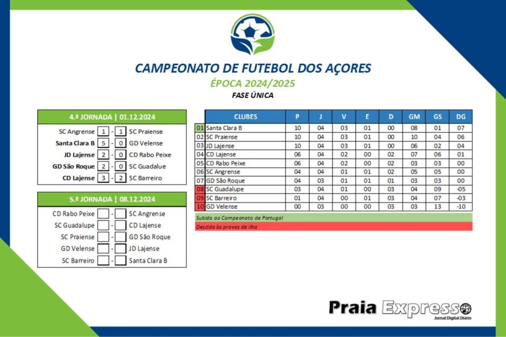 O Campeonato de Futebol dos Açores (CFA), em seniores masculinos, prosseguiu este fim de semana com a realização de mais uma jornada, concretamente, a 4.ª jornada da prova maior do futebol açoriano.