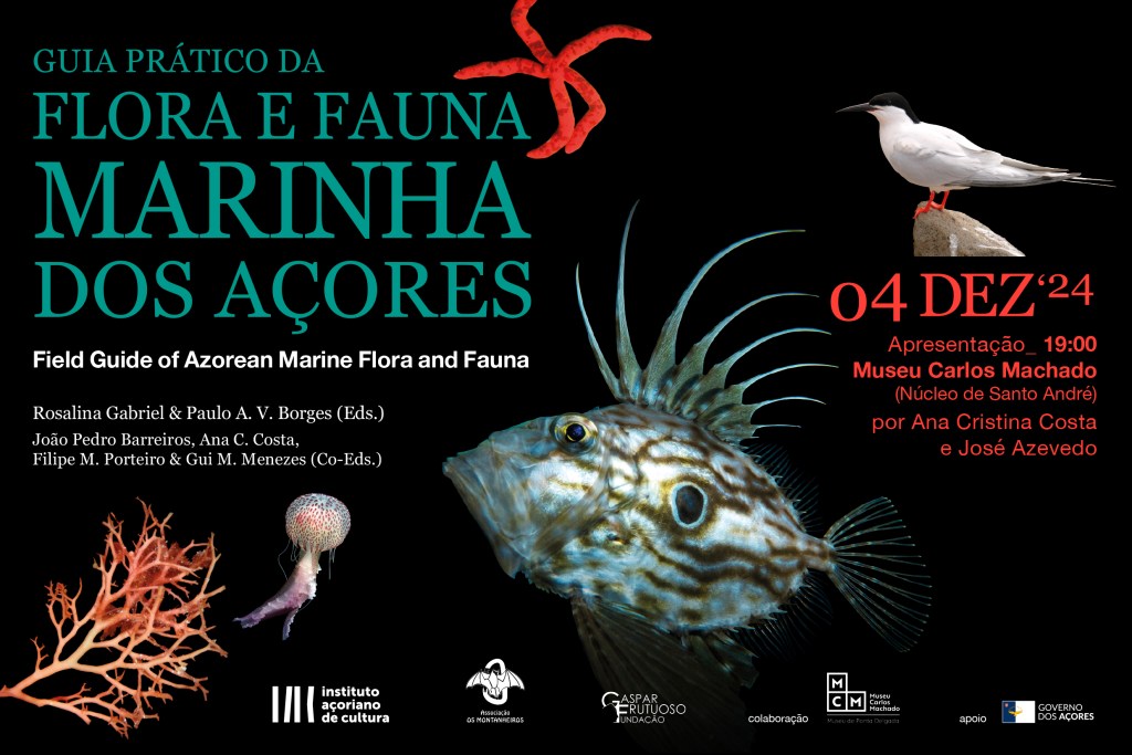 O Guia Prático da Flora e Fauna Marinha dos Açores / Field Guide of Azorean Marine Flora and Fauna, edição do Instituto Açoriano de Cultura, dos editores Rosalina Gabriel e Paulo A. Borges será apresentado no dia 4 de dezembro, pelas 19h00, no Museu Carlos Machado (Núcleo de Santo André).