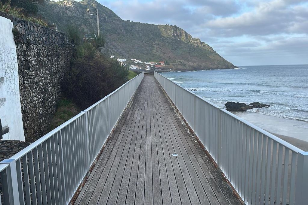 O material escolhido para a nova estrutura foi o alumínio, dada a sua maior resistência à agressividade do ambiente costeiro, caracterizado por elevados níveis de salinidade. A intervenção reforça a segurança dos utilizadores dos percursos pedestres que ladeiam a baía, contribuindo igualmente para a valorização paisagística de um dos ex-libris da ilha.