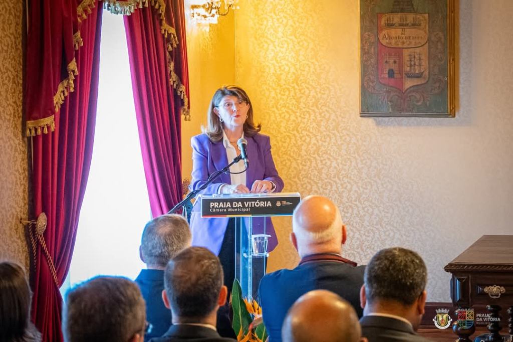 Berta Cabral discursou durante a sessão de apresentação do Projeto de Execução de Reforço do Subsistema de Abastecimento de Água Agualva/Praia. A governante sublinhou que a obra representa “um investimento fundamental” da Câmara Municipal da Praia da Vitória na melhoria do abastecimento de água à população.