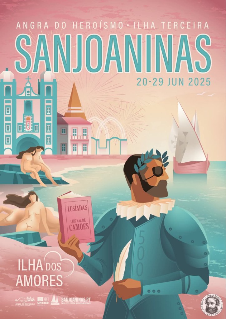 O tema das Sanjoaninas de 2025 — Ilha dos Amores — presta homenagem a Luís de Camões, no âmbito das comemorações nacionais dos 500 anos do seu nascimento. Figura incontornável da literatura e cultura portuguesas, Camões imortalizou os feitos de Portugal n’Os Lusíadas, uma obra-prima da poesia épica que enaltece os navegadores lusitanos e as paisagens que desbravaram. Angra do Heroísmo, pela sua história ligada às Grandes Navegações, não poderia deixar de se associar a estas comemorações.