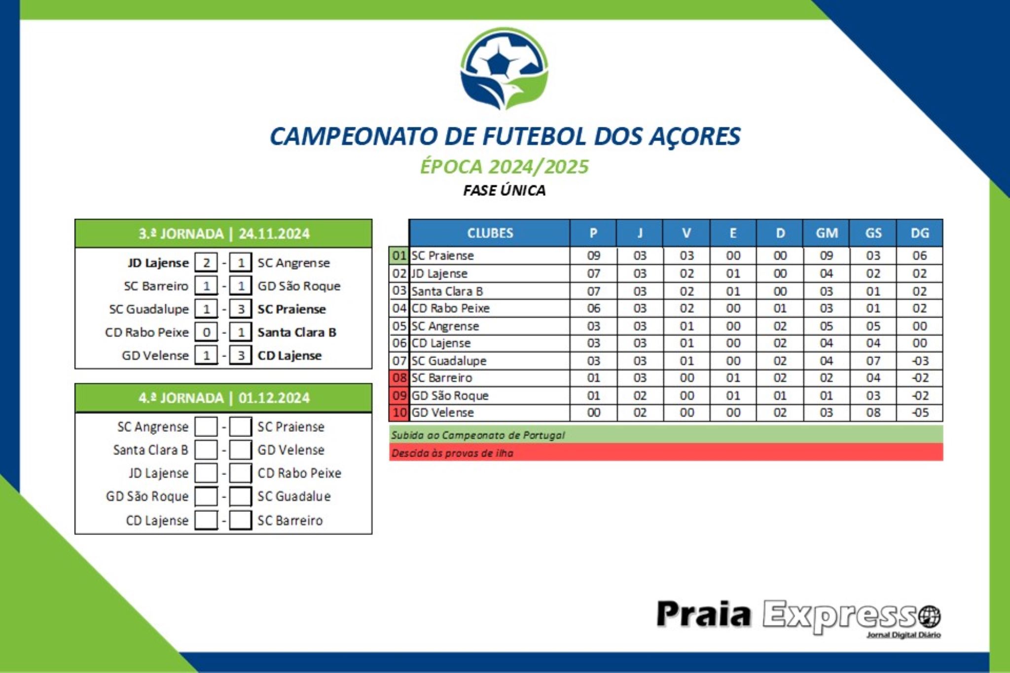 O vencedor ascenderá ao Campeonato de Portugal, sendo que os três últimos descem aos campeonatos de ilha. O número de equipas a baixar está sempre dependente do número de equipas que competindo em provas nacionais regressem às provas regionais (interassociações).