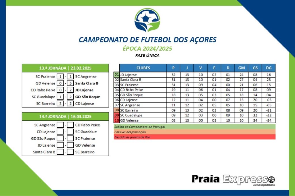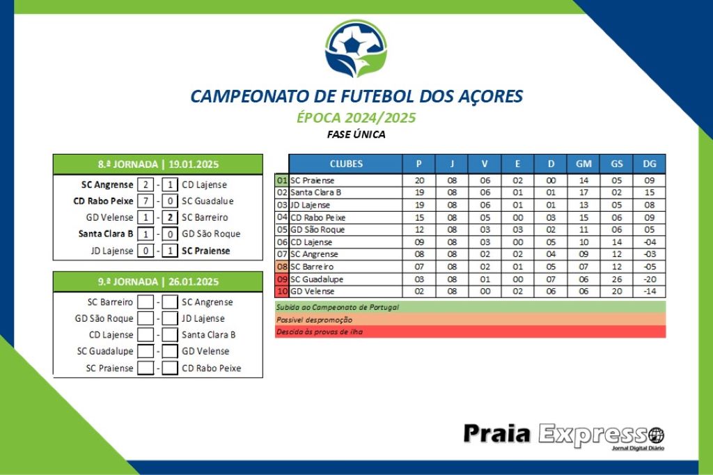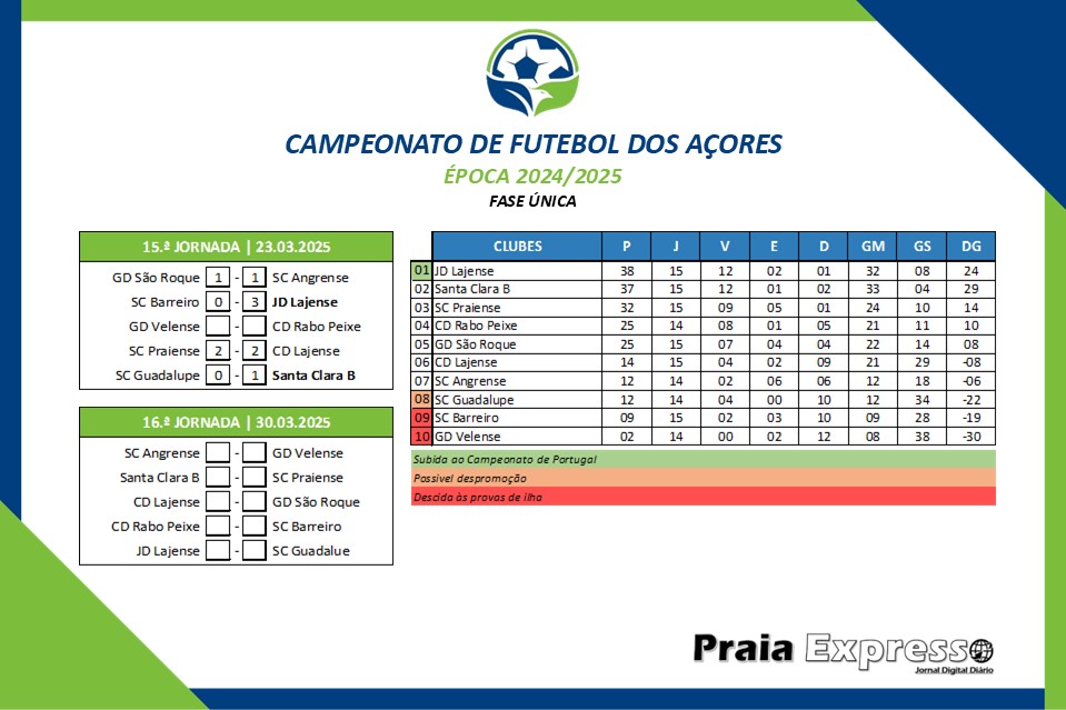 O Campeonato de Futebol dos Açores (CFA), em seniores masculinos, cumpriu este fim de semana a 17.ª e penúltima jornada da época desportiva 2024/2025.