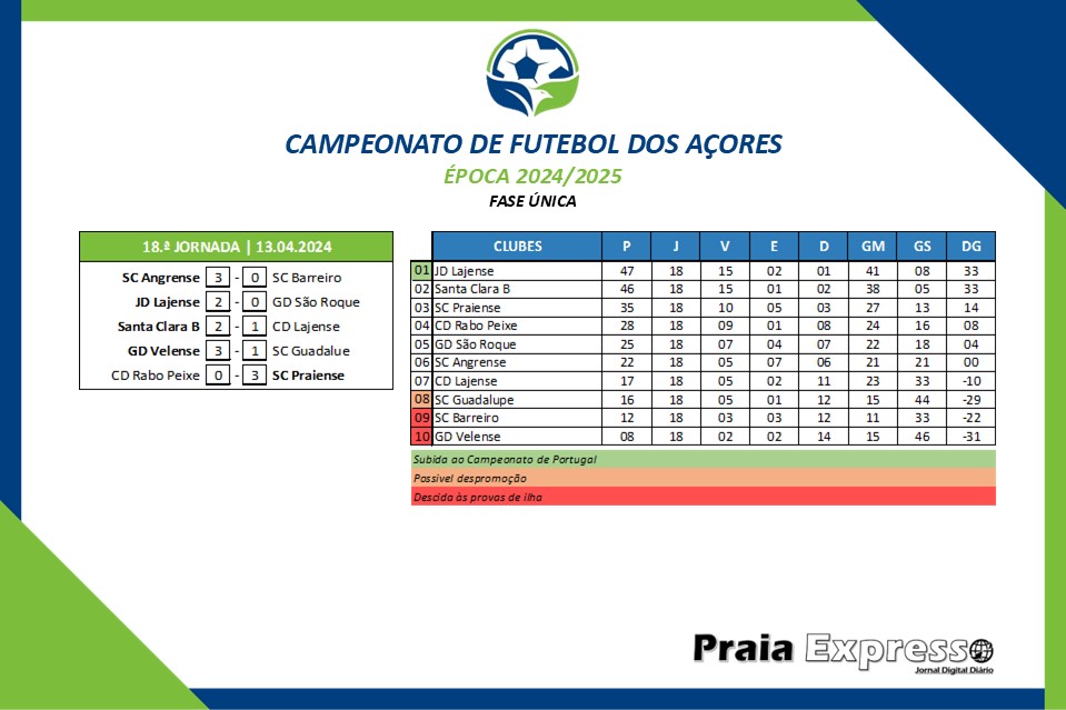 O Campeonato de Futebol dos Açores (CFA), em seniores masculinos, época 2024/2025, chegou este fim de semana ao fim, com a realização da 18.ª e última jornada da competição.