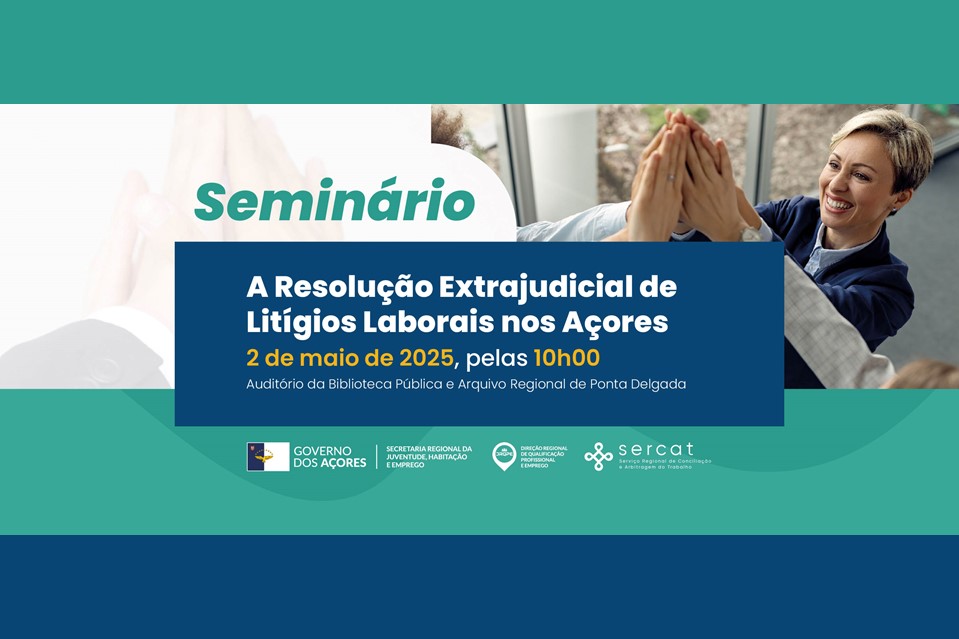A Secretaria Regional da Juventude, Habitação e Emprego, através da Direção Regional da Qualificação Profissional e Emprego, promove no próximo dia 2 de maio o seminário “A Resolução Extrajudicial de Litígios Laborais nos Açores”, no âmbito da atividade do SERCAT – Serviço Regional de Conciliação e Arbitragem do Trabalho.