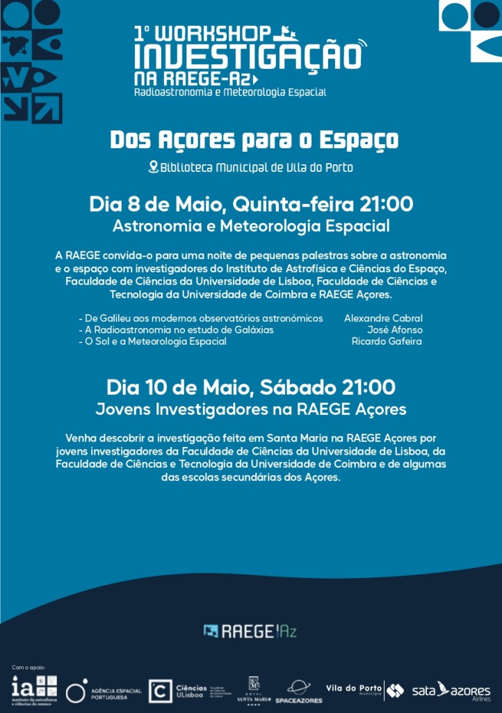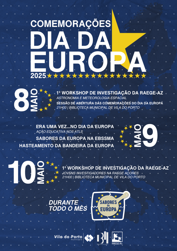 Entre os dias 8 e 9 de maio, Vila do Porto acolhe ainda o 1.º workshop de investigação da RAEGE (Rede Atlântica de Estações Geodinâmicas e Espaciais), com o apoio logístico do município. A sessão de abertura das comemorações do Dia da Europa realiza-se no dia 8, pelas 21h00, na Biblioteca Municipal.