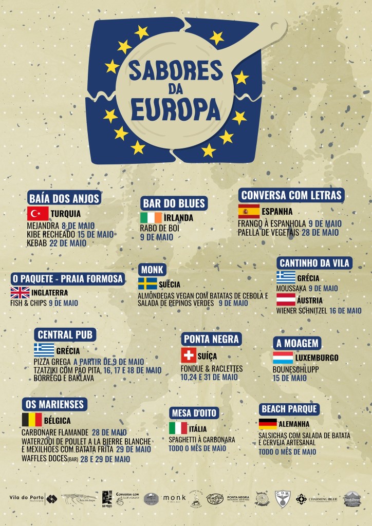 Ao longo de maio, as bandeiras dos 27 países da União Europeia estarão expostas no centro da vila, numa iniciativa simbólica que visa reforçar o sentimento de pertença ao espaço europeu. Paralelamente, será dinamizada a ação “Sabores da Europa”, que envolve vários restaurantes locais na confeção de pratos típicos de diferentes países da União, em datas previamente escolhidas. A autarquia assegura a promoção da iniciativa através dos órgãos de comunicação locais e nas plataformas digitais, incentivando o consumo local e a valorização da diversidade gastronómica europeia.