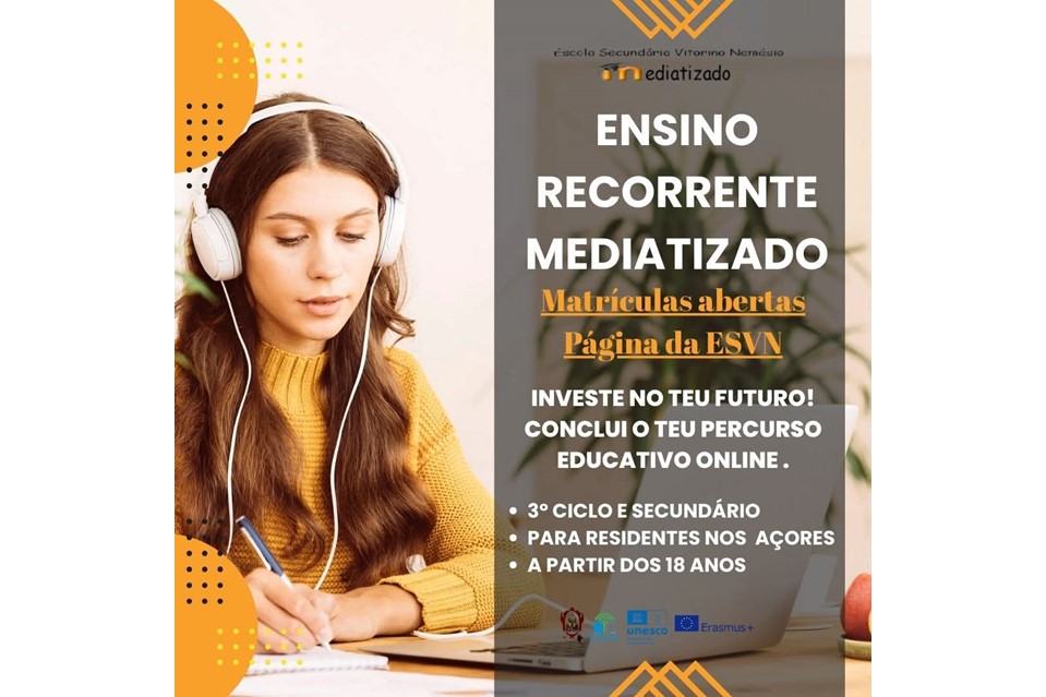 A Escola Secundária Vitorino Nemésio (ESVN), anunciou a abertura de matrículas para o regime de ensino recorrente mediatizado, conforme divulgado recentemente nas suas redes sociais.