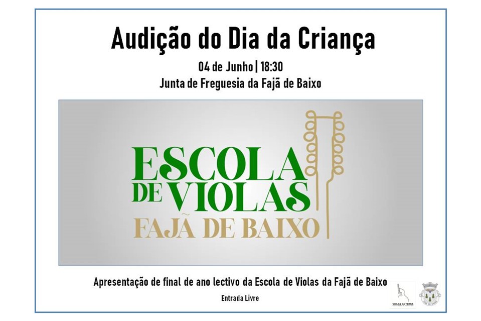 A Associação de Juventude Viola da Terra promove no próximo dia 4 de Junho, pelas 18h30, a Audição Comemorativa do Dia da Criança, no Salão Nobre da Junta de Freguesia da Fajã de Baixo, em Ponta Delgada. O evento contará com a participação dos alunos da Escola de Violas da Fajã de Baixo e terá entrada livre, limitada à lotação do espaço. A informação foi avançada em nota de imprensa enviada às redações pela organização.