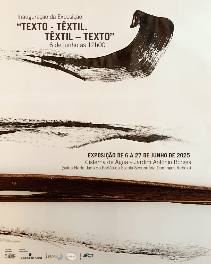 A Cresaçor inaugura na próxima quinta-feira, 6 de junho, às 12h00, no edifício da Cisterna de Água, no Jardim António Borges, em Ponta Delgada, a exposição “Texto-Têxtil. Têxtil-Texto”, que ficará patente ao público até 27 de junho de 2025. A iniciativa é o culminar de um projeto com o mesmo nome, promovido em parceria com a Escola Secundária Domingos Rebelo e financiado pela Direção Regional da Juventude através do Programa de Apoio ao Empreendedorismo, Criatividade e Talento Jovem.