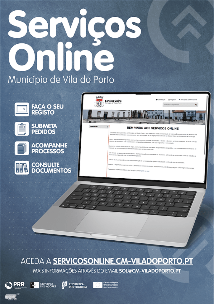 O Município de Vila do Porto disponibilizou esta quarta-feira, 29 de outubro, um novo Portal de Serviços Online que permitirá aos cidadãos aceder a vários serviços municipais através do computador ou telemóvel, evitando deslocações presenciais. A iniciativa foi anunciada em nota de imprensa enviada pela autarquia.