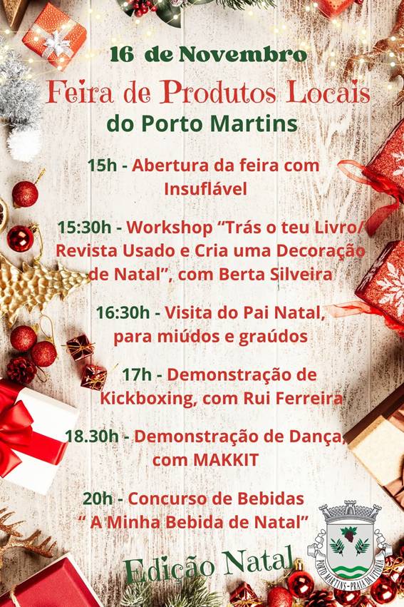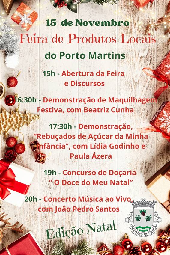 A Feira de Produtos Locais “O encanto do Natal chega ao Porto Martins” está de regresso ao Pavilhão Desportivo da freguesia nos dias 15 e 16 de novembro, numa iniciativa promovida pela Junta de Freguesia do Porto Martins, que espera repetir o sucesso dos anos anteriores.