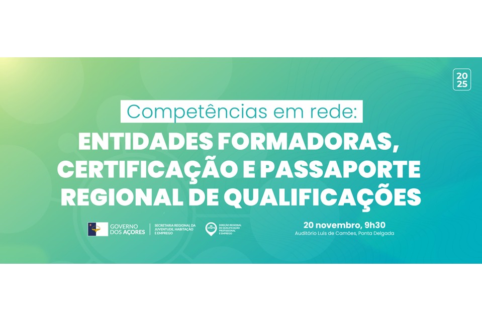 A Secretaria Regional da Juventude, Habitação e Emprego promove no dia 20 de novembro, em Ponta Delgada, o seminário “Competências em rede”, dedicado à certificação de entidades formadoras e à apresentação do Passaporte Regional de Qualificações.