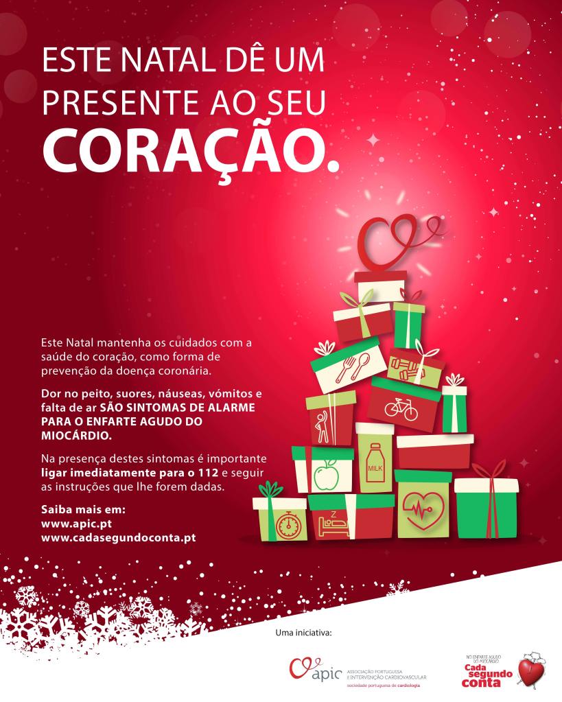 A Associação Portuguesa de Intervenção Cardiovascular (APIC) volta a consciencializar a população para a importância de manter os cuidados com a saúde do coração, por forma a prevenir a doença coronária e as suas consequências. A iniciativa, sob o mote “Este Natal dê um presente ao seu coração”, tem como objetivo apelar aos portugueses que tenham atenção aos excessos habituais durante a época festiva.