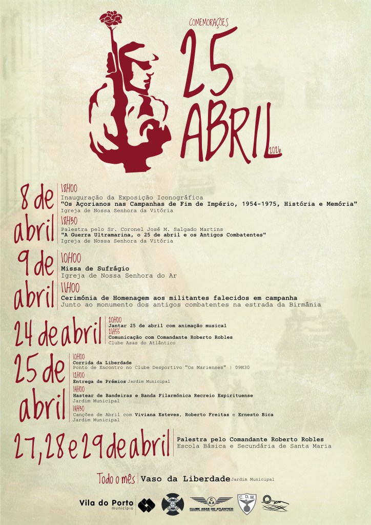 O Município de Vila do Porto, em Santa Maria, está a promover um conjunto de iniciativas para assinalar as comemorações do 25 de Abril, envolvendo várias instituições locais e atividades culturais, educativas e de homenagem aos ex-combatentes ao longo do mês.