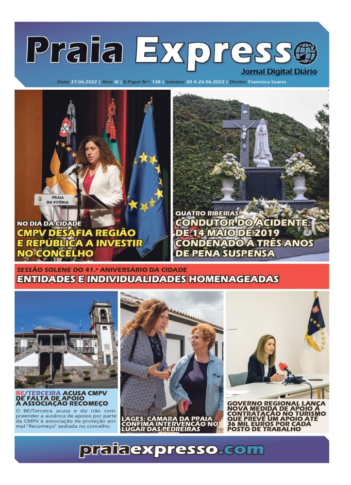 A Sessão Solene comemorativa do 41.º aniversário de elevação da Praia da Vitória a cidade, que decorreu na noite de segunda-feira, 20 de junho, no Auditório do Ramo Grande, ficou marcada pelas homenagens do município às entidades e individualidades que se destacaram na vida social, económica, desportiva e cultural do concelho.