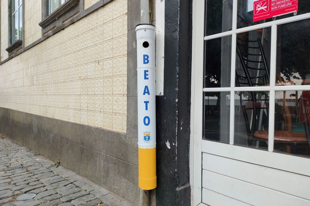 Se às pontas de cigarro que restam depois de saciado o vício de fumar chamamos “beatas”, então porque não designar de “beato” o recipiente que as recebe? — E foi com base neste apurado raciocínio que a Junta de Freguesia de Santa Cruz se baseou para criar o seu “Beato”.