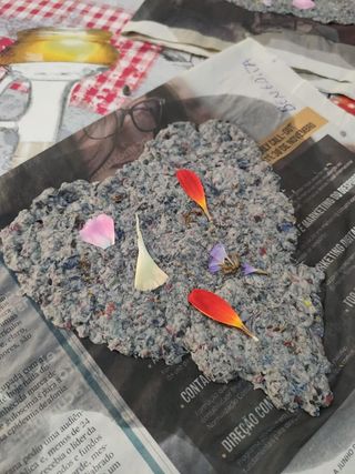 - O papel usado deve ser cortado em pedaços e colocado em água num recipiente durante, no mínimo, 24h;