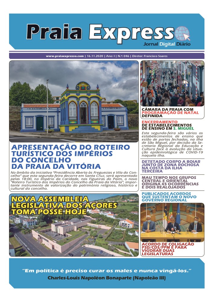 No âmbito da iniciativa “Presidência Aberta às Freguesias e Vila do Concelho” que esta segunda-feira decorre em Santa Cruz, será apresentado pelas 18:00, no Império da Caridade, nas Figueiras do Paim, o novo “Roteiro Turístico dos Impérios do Concelho da Praia da Vitória”, importante instrumento de valorização do património religioso, histórico e cultural do concelho.
