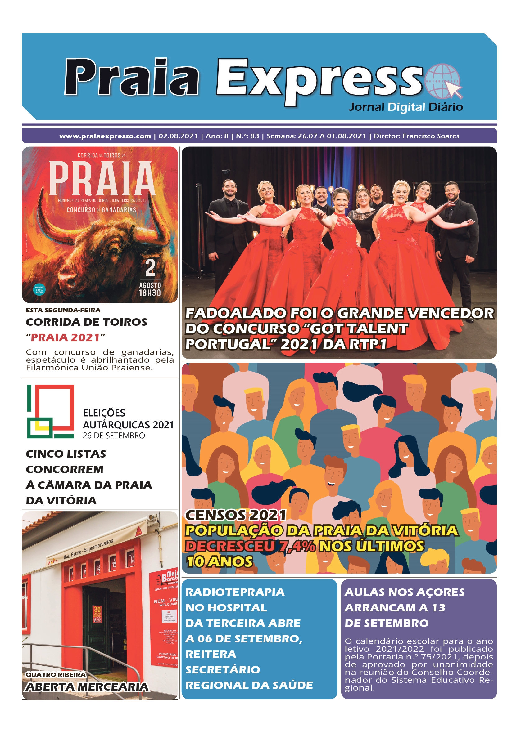 CENSOS 2021: POPULAÇÃO DA PRAIA DA VITÓRIA DECRESCEU 7,4% NOS ÚLTIMOS 10 ANOS
