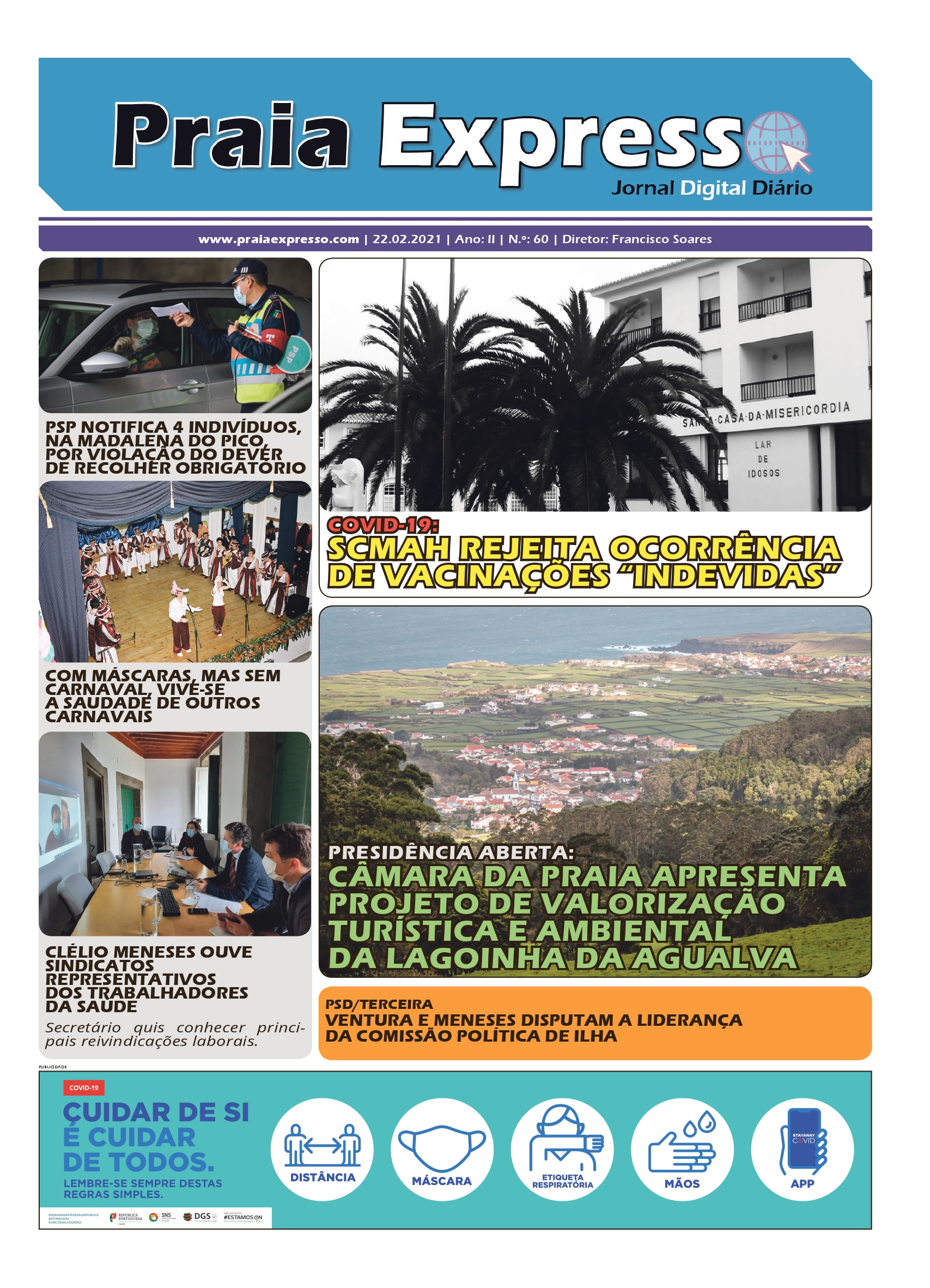 Por sua iniciativa o secretário regional da Saúde e Desporto, Clélio Meneses, foi ouvido na passada sexta-feira na Comissão de Assuntos Sociais do parlamento regional, para dar conta do processo de vacinação contra a COVID-19 nos Açores. Para o PS, a audição aumentou as dúvidas e provocou “suspeição injusta e inaceitável sobre as Instituições de Solidariedade Social da Região”. Já o PSD, considera que audição foi perturbada pelas “interrupções constantes” do PS, que desde que é oposição “enveredou por um clima de guerrilha permanente e até perdeu o pouco sentido de estado que lhe restava”.